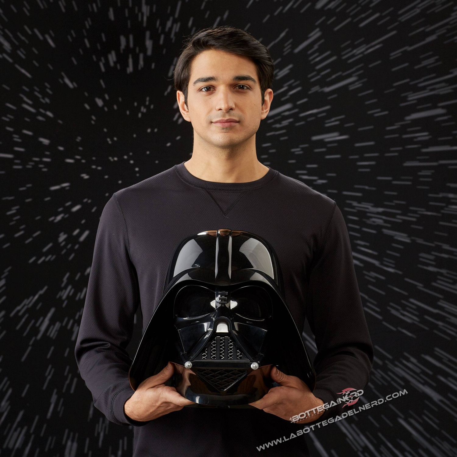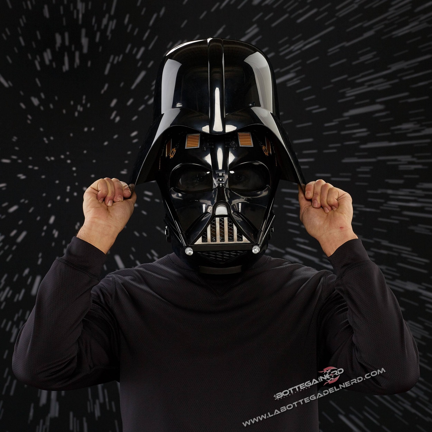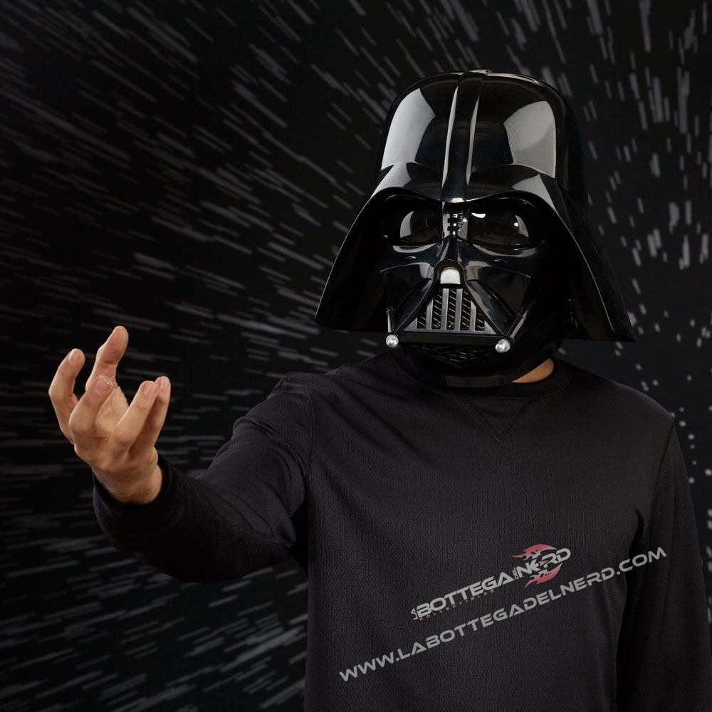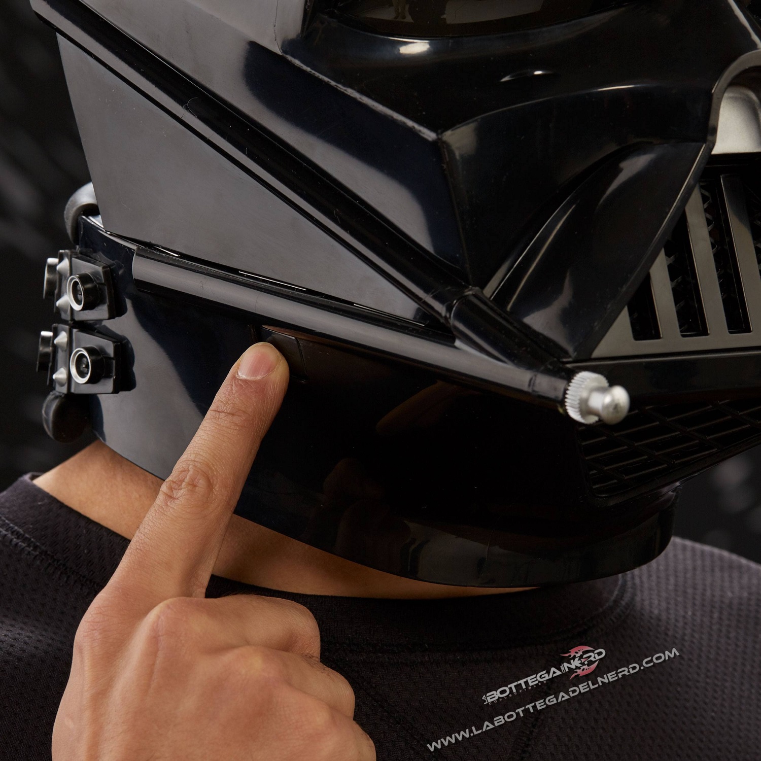 Il casco dispone della funzione “Electronic Voice Changer ” per simulare l’effetto della voce usata da Lord Vader, l’elmo è composto da 3 pezzi magnetici così come visto nel lungometraggio, richiede  2 batterie AAA non incluse nella confezione.