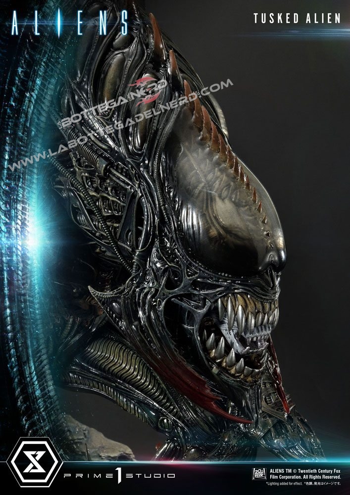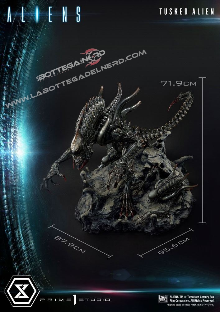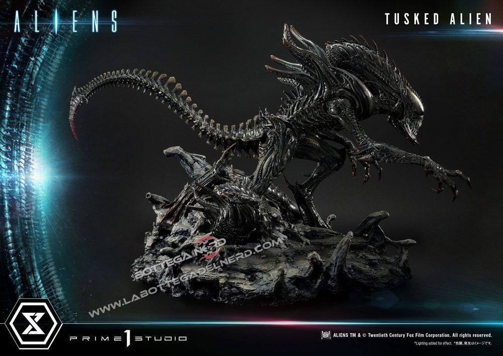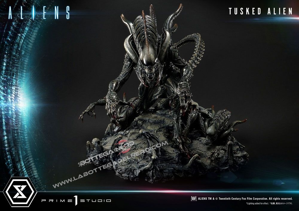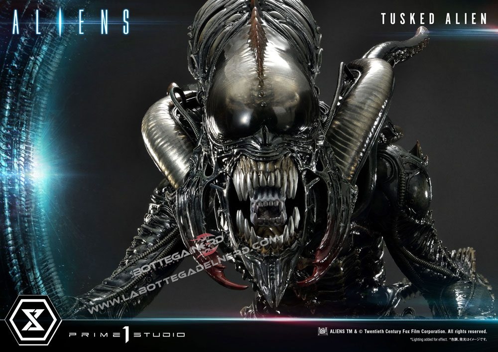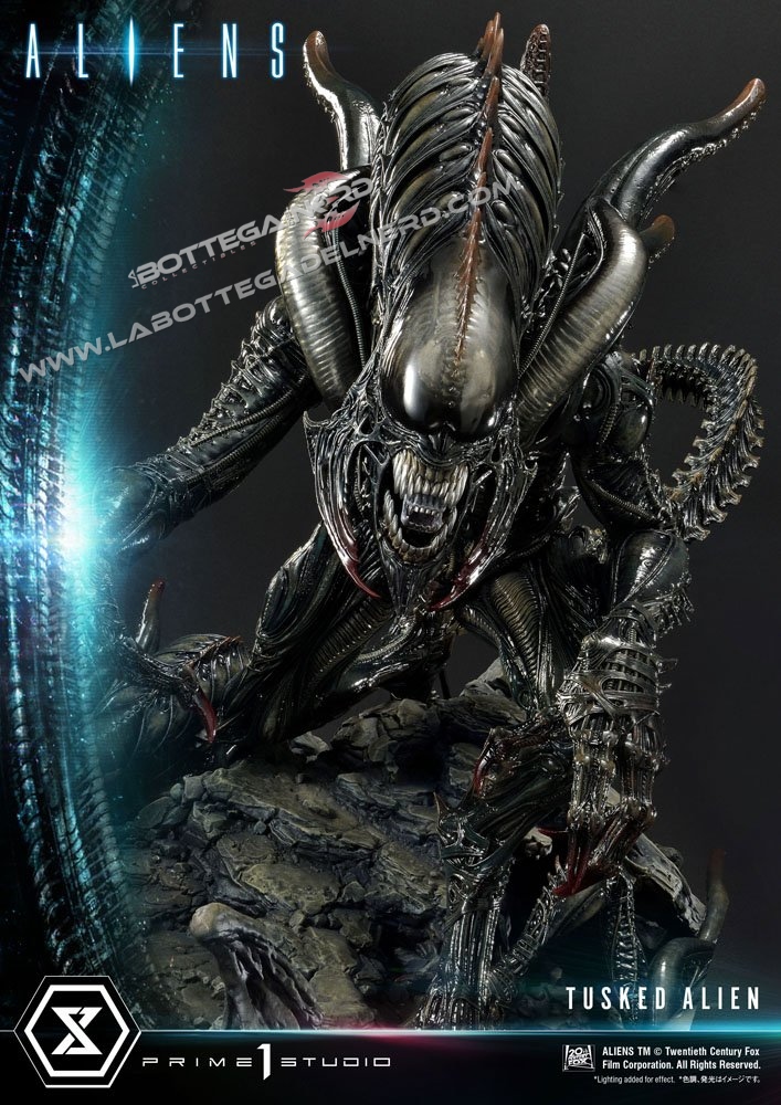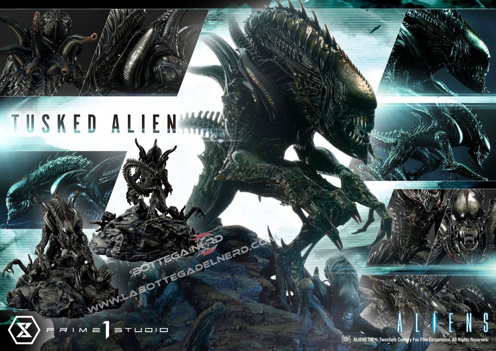 Prime 1 Studio immortala la creatura in una gigantesca statua alta quasi 80 cm e dal diametro di 1 Metro, dove troviamo il colossale Tusked sovrastare due Alien sulla base a tema. Si tratta di una produzione estremamente limitata, dato che ne saranno prodotte solo 350 copie al mondo.