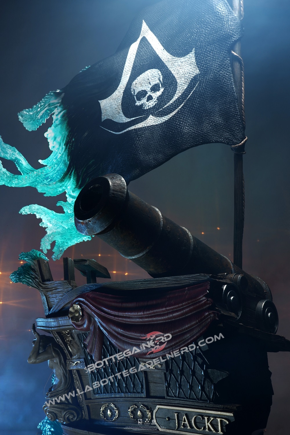 Dotato di un sistema LED che illumina l’effetto Animus, Edward Kenway viene mostrato con la sua sciabola disegnata sulla poppa della Jackdaw, l’impetuosa nave di cui è capitano.