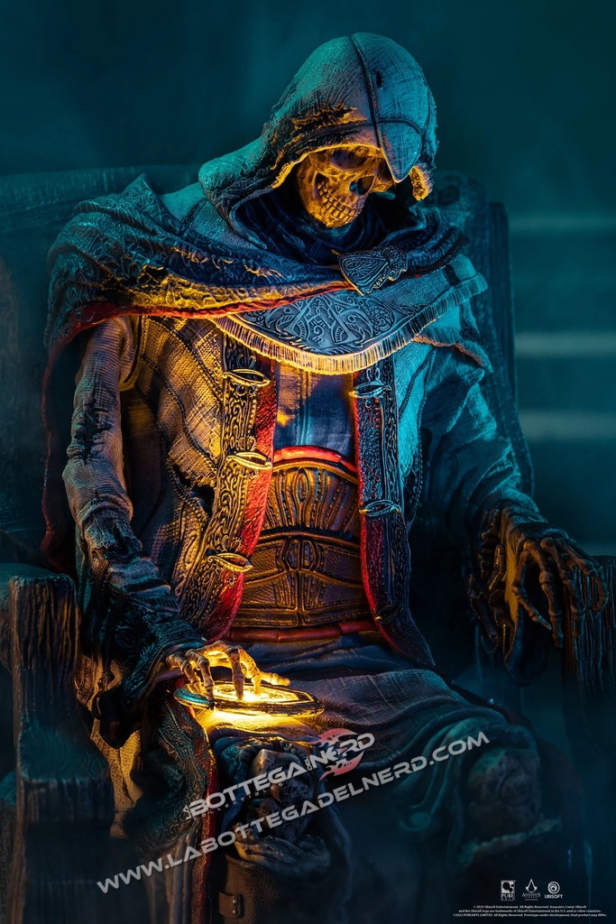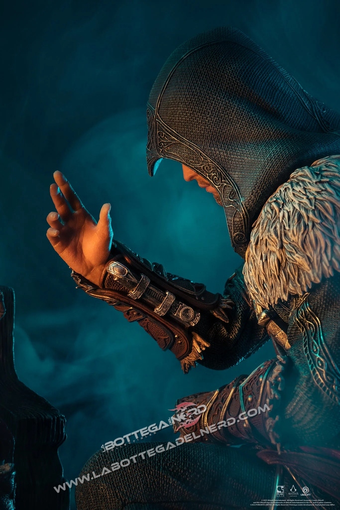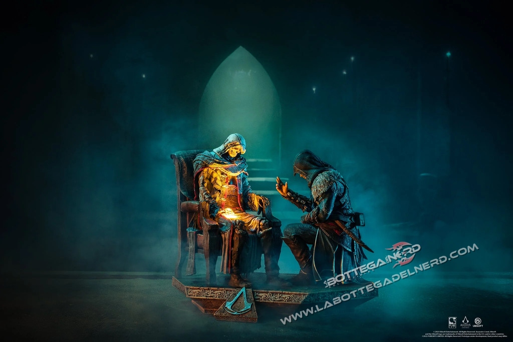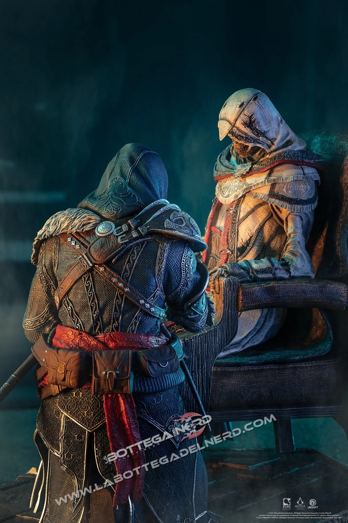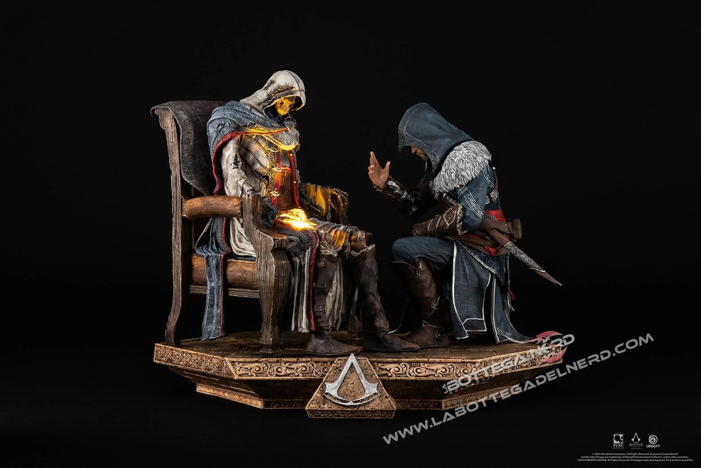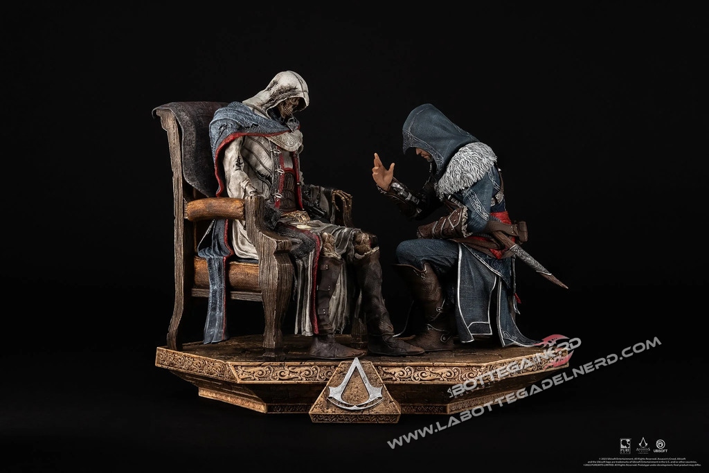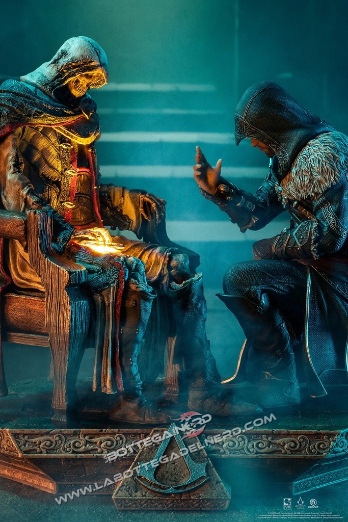 Ezio Auditore entrò nella Biblioteca di Altaïr Ibn-La’Ahad aspettandosi di trovare dei libri. Invece si trovò faccia a faccia con i resti dello stesso Altaïr, seduto su una sedia e con in mano un Sigillo della Memoria. Questa statua ritrae Ezio inginocchiato davanti ad Altair per rendergli omaggio, Pure Arts ha catturato il momento cruciale in cui Ezio scopre lo scopo della sua vita!