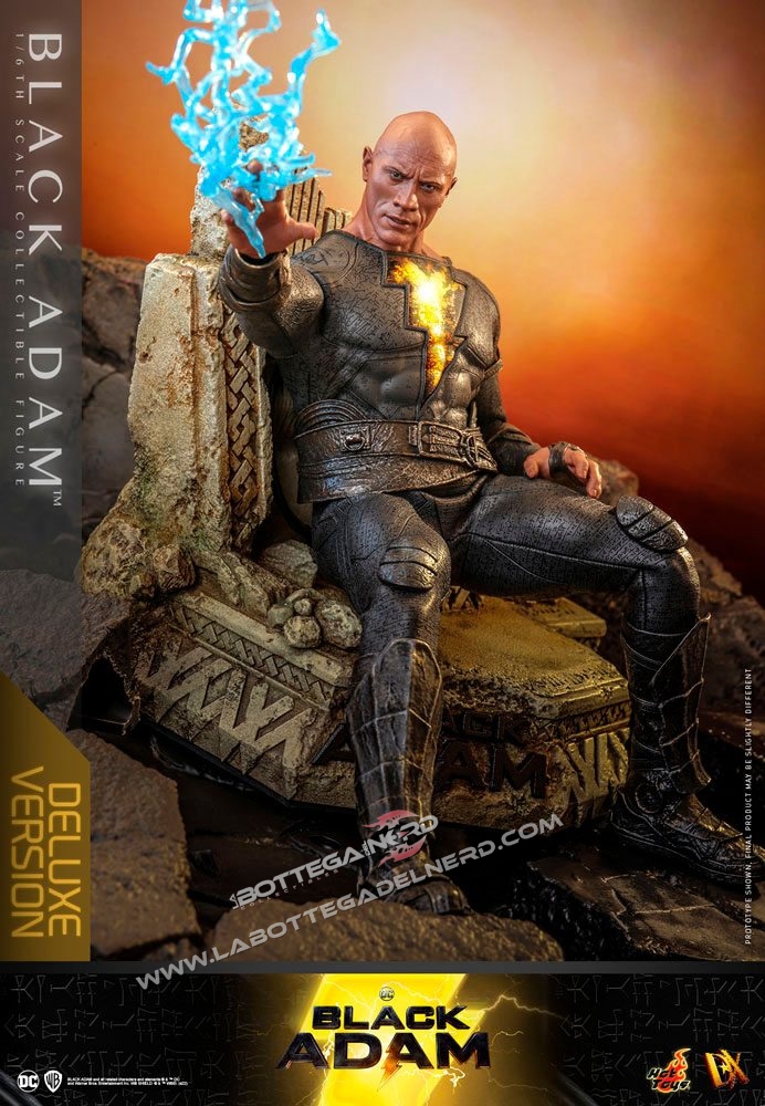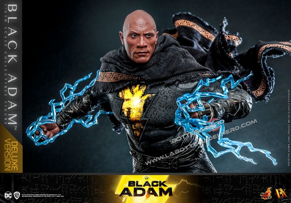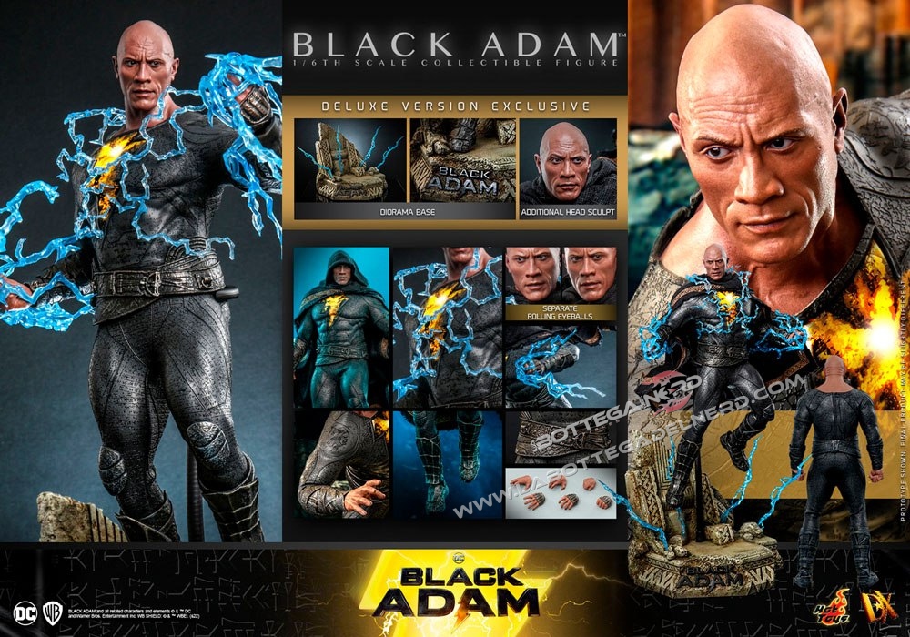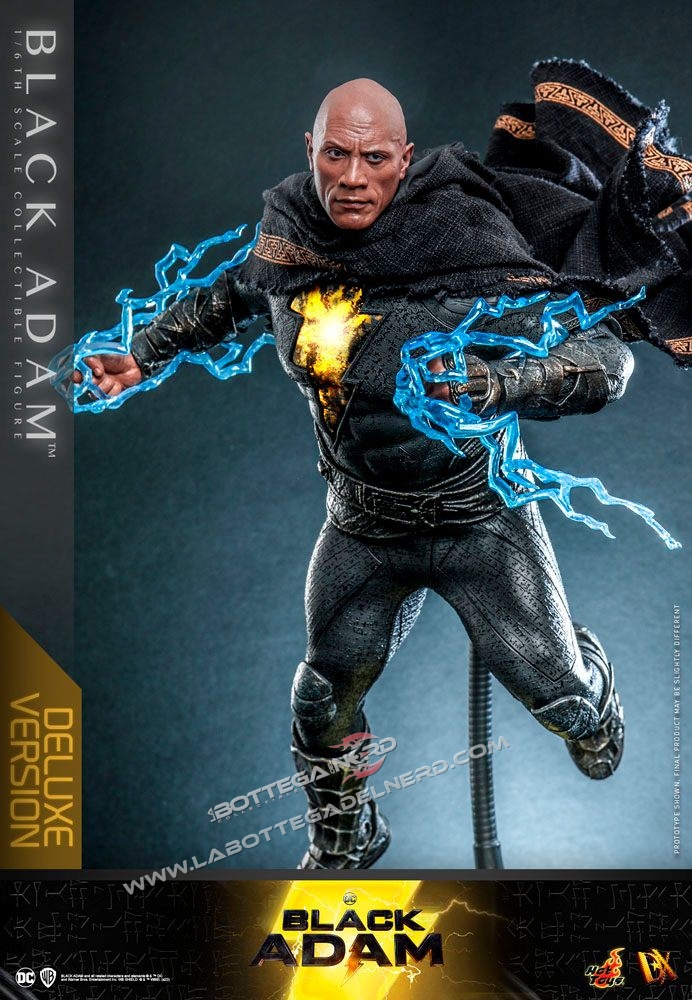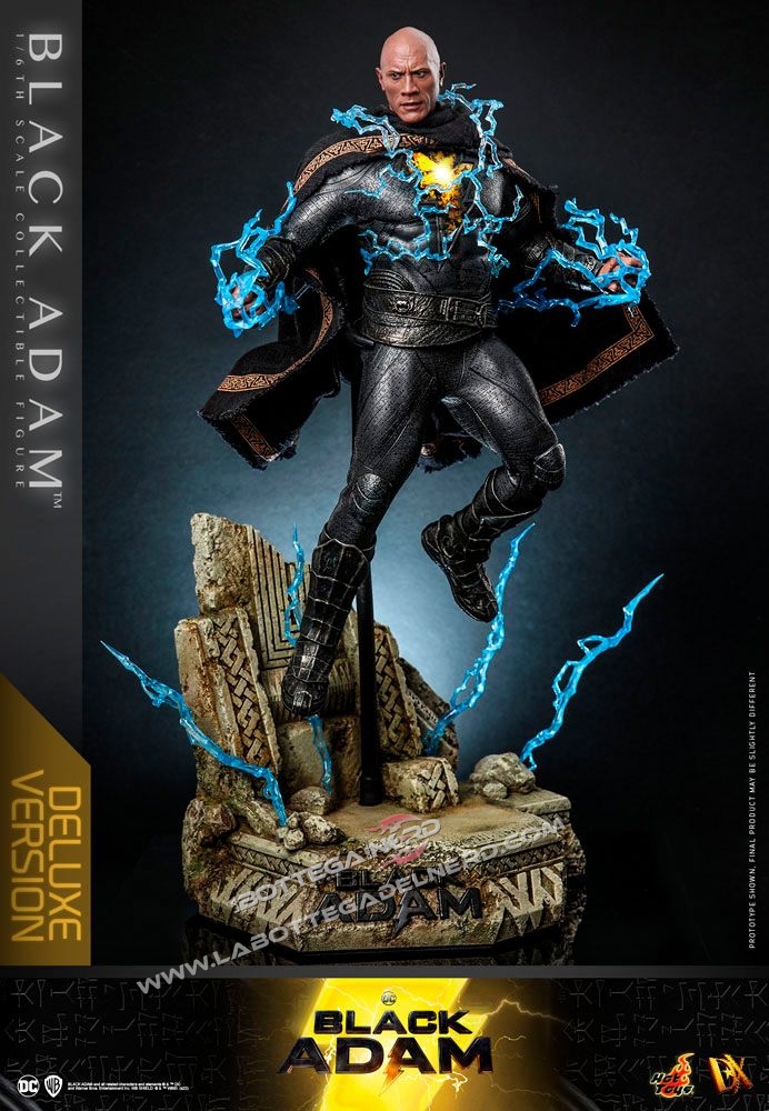 La versione standard di Black Adam include occhi mobili, un mantello in tessuto, mani intercambiabili, effetti di fulmini blu, petto illuminato a LED e stand espositivo. La versione Black Adam Deluxe include in aggiunta un altro volto ed una base diorama. La versione  Golden Armor sostituisce parte dell’armatura e cambia i fulmini da blu a oro.