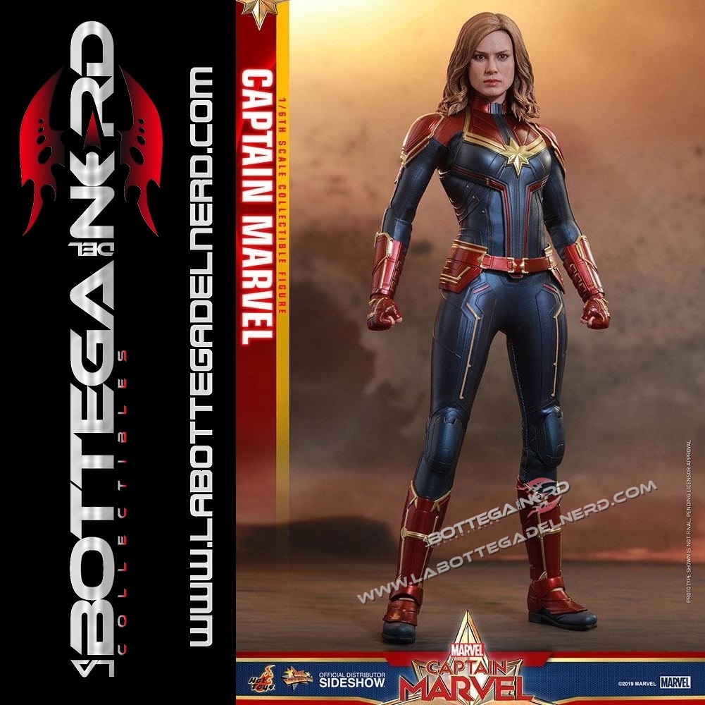 Realizzata in maniera impeccabile dalle sapienti mani dei maestri scultori di casa Hot Toys, la figura presenta due teste intercambiabili tra cui una testa smascherata di nuova concezione con una somiglianza sorprendente all’attrice Brie Larson e una testa chiusa dentro l’elmetto scolpita con luci a LED negli occhi al fine di conferire un aspetto molto accattivante alla Supereroina, due diverse acconciature, un corpo di nuova concezione dotato di funzione di illuminazione a LED su entrambi i lati degli avambracci, un costume abilmente modellato su misura dal color rosso metallizzato e blu con un emblema a forma di stella sul petto oltre a diversi altri accessori presenti all’interno della confezione.