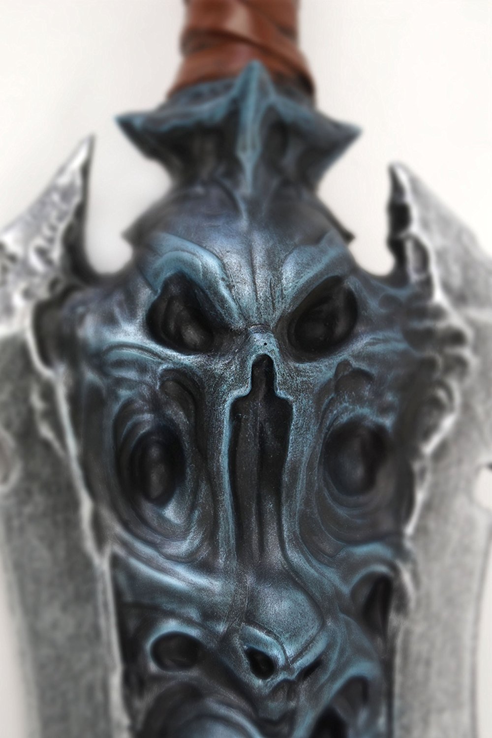 La lama è super dettagliata e ricrea i più piccoli particolari mostrando anche i piccoli graffi sulla lama, risultato delle battaglie di Guerra contro i suoi nemici.