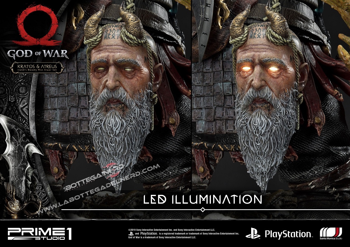 I dettagli di questa statua sono semplicemente impressionanti, ogni minimo particolare è stato meticolosamente curato, le imponenti dimensioni di 72 cm ne fanno un vero must per veri appassionati e collezionisti che hanno amato e amano tuttora questo splendido videogioco, grazie alla posa altamente dinamica Kratos prende letteralmente vita e sprigiona tutta la sua devastante rabbia contro il suo obiettivo al fine di difendere l’amato figlio posto dietro al DIO della Guerra.
