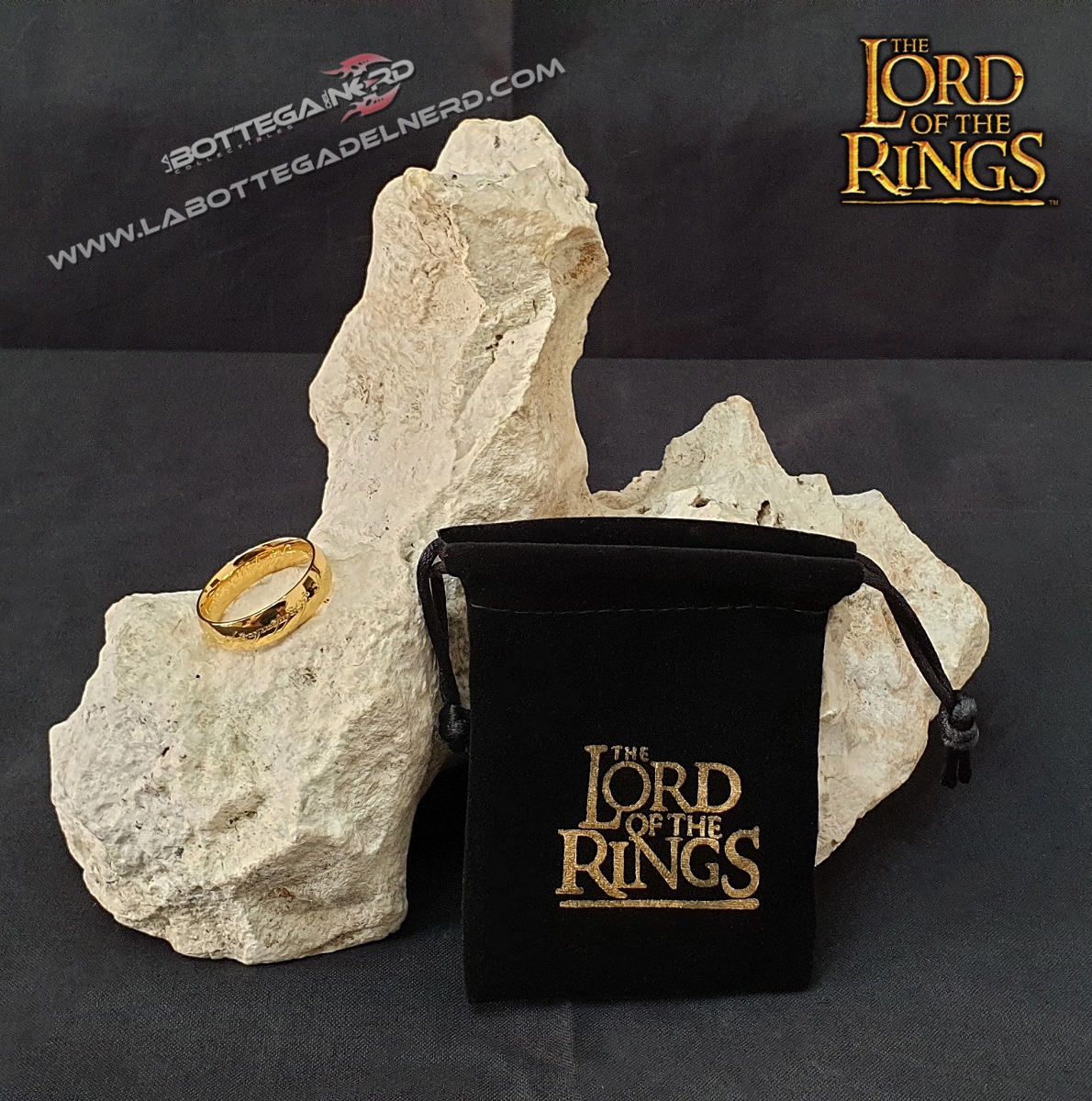 Bellissima replica da collezione dell’unico anello tratto dalla trilogia del “IL SIGNORE DEGLI ANELLI” con bustina in velluto.