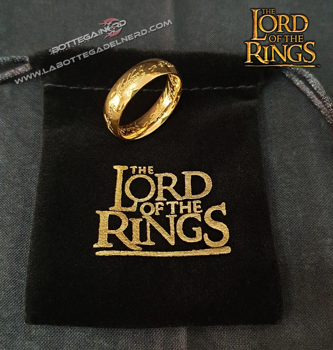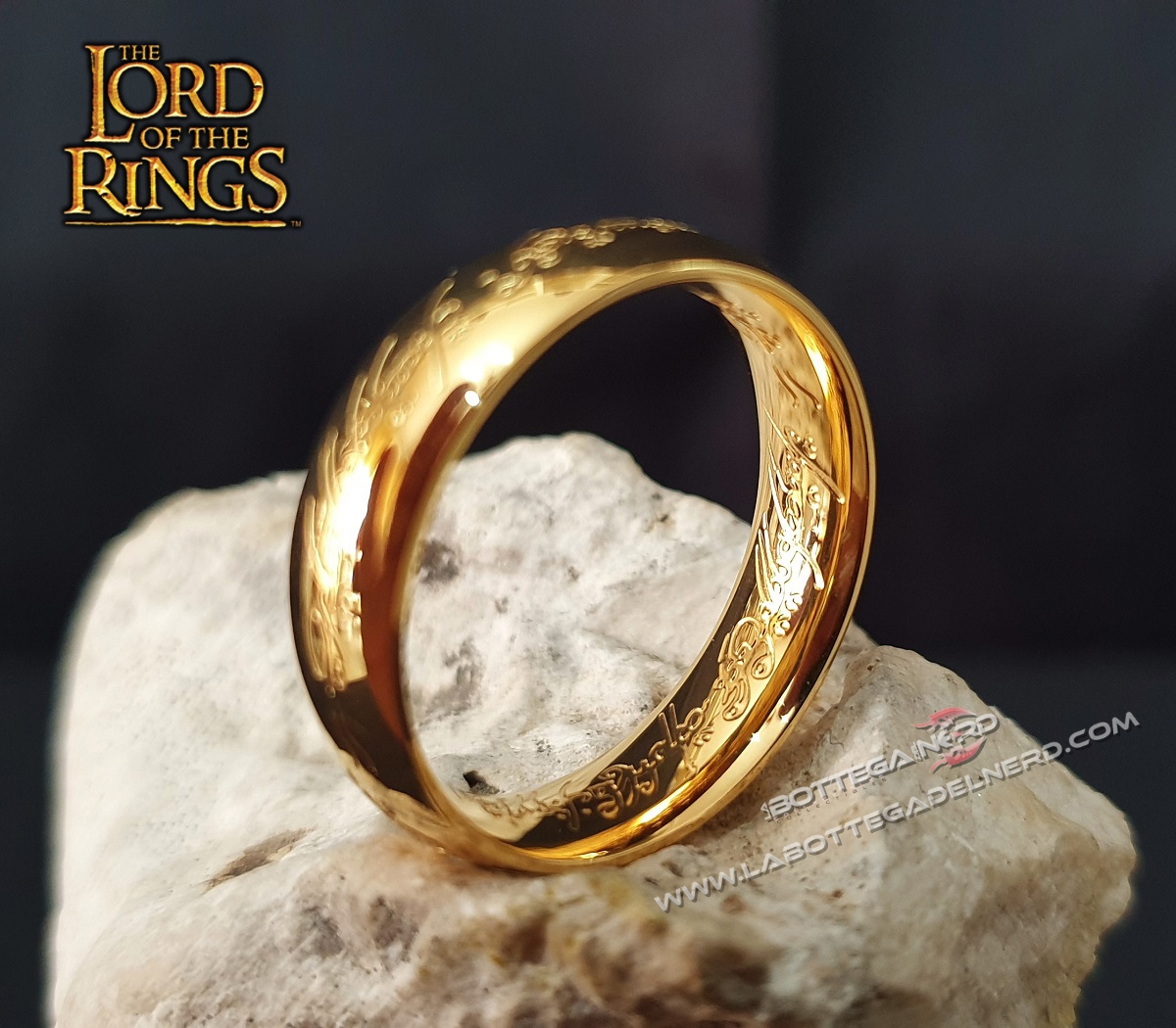 Sia all’interno che all’esterno dell’anello è incisa la famosa scritta in lingua di MORDOR