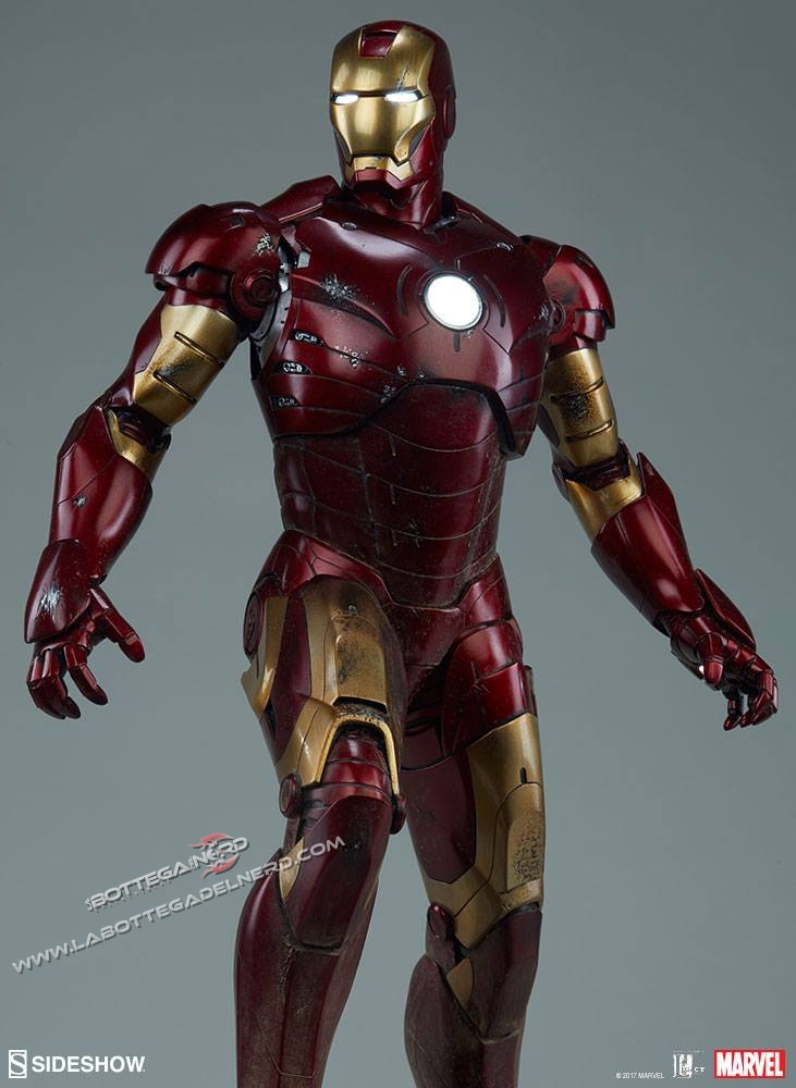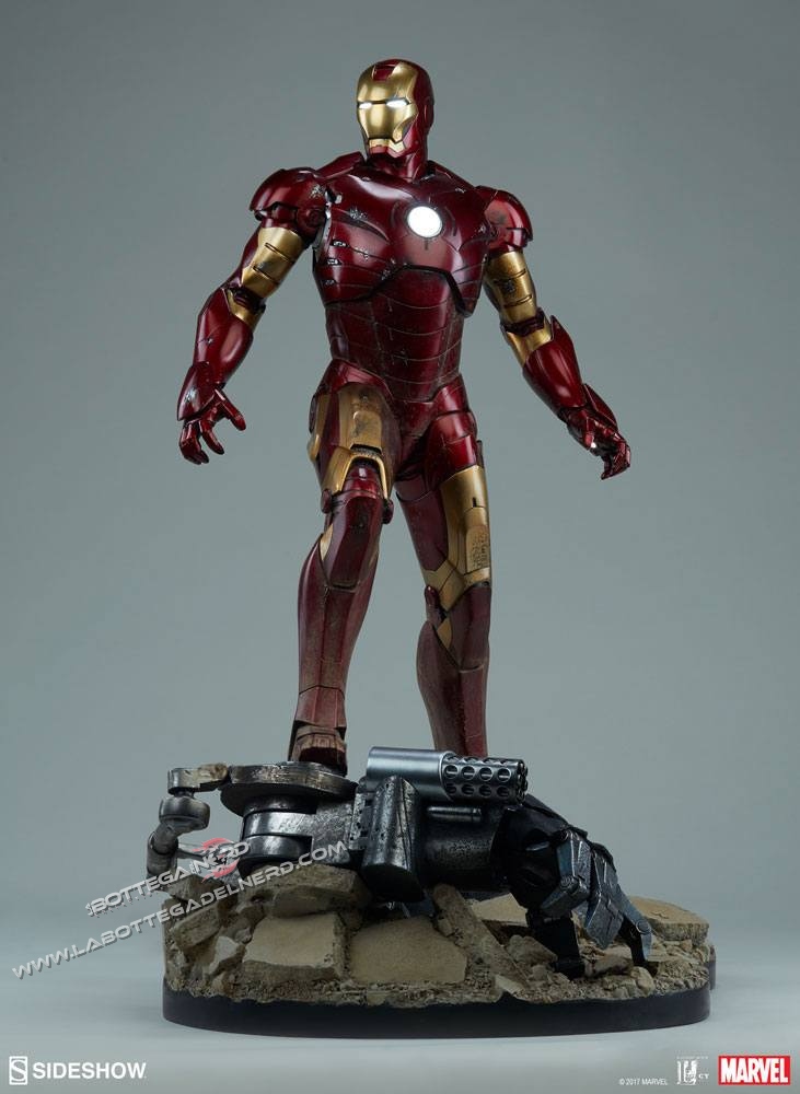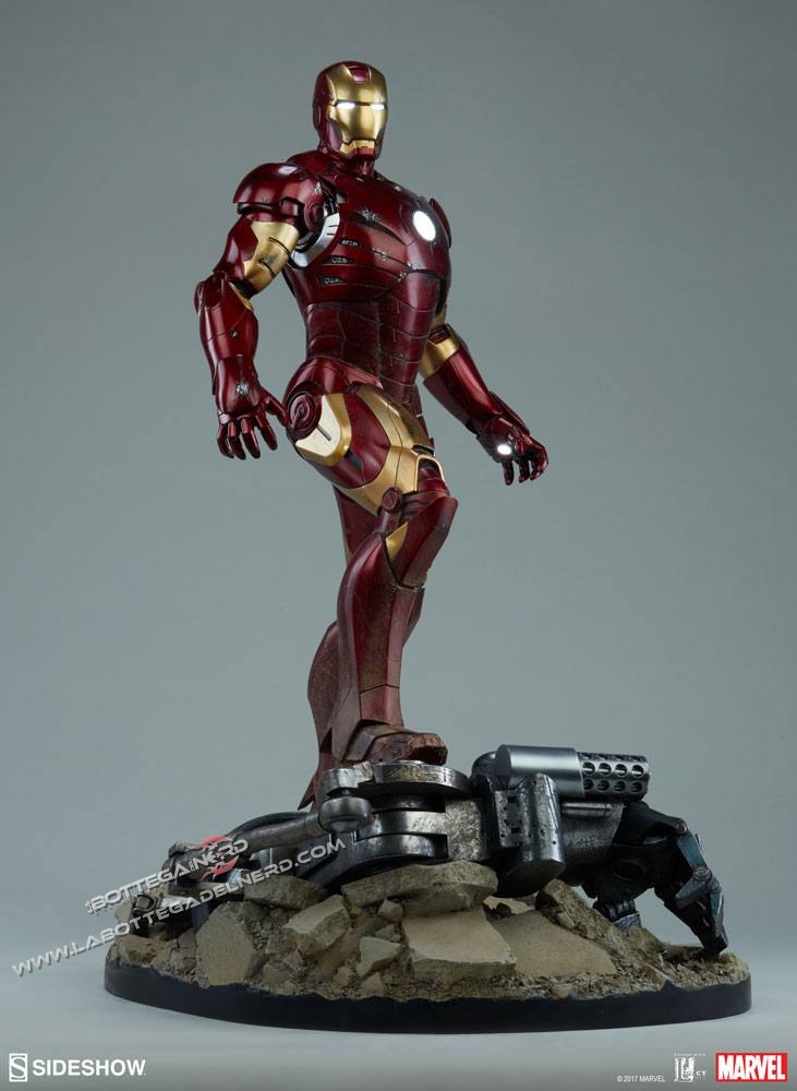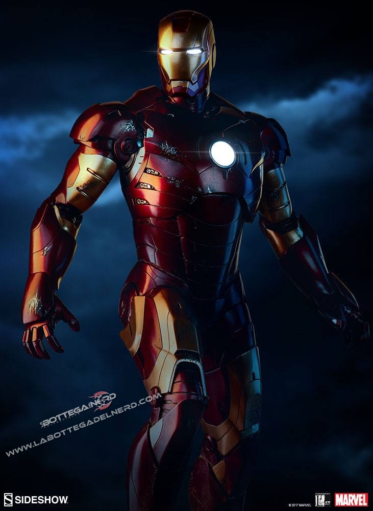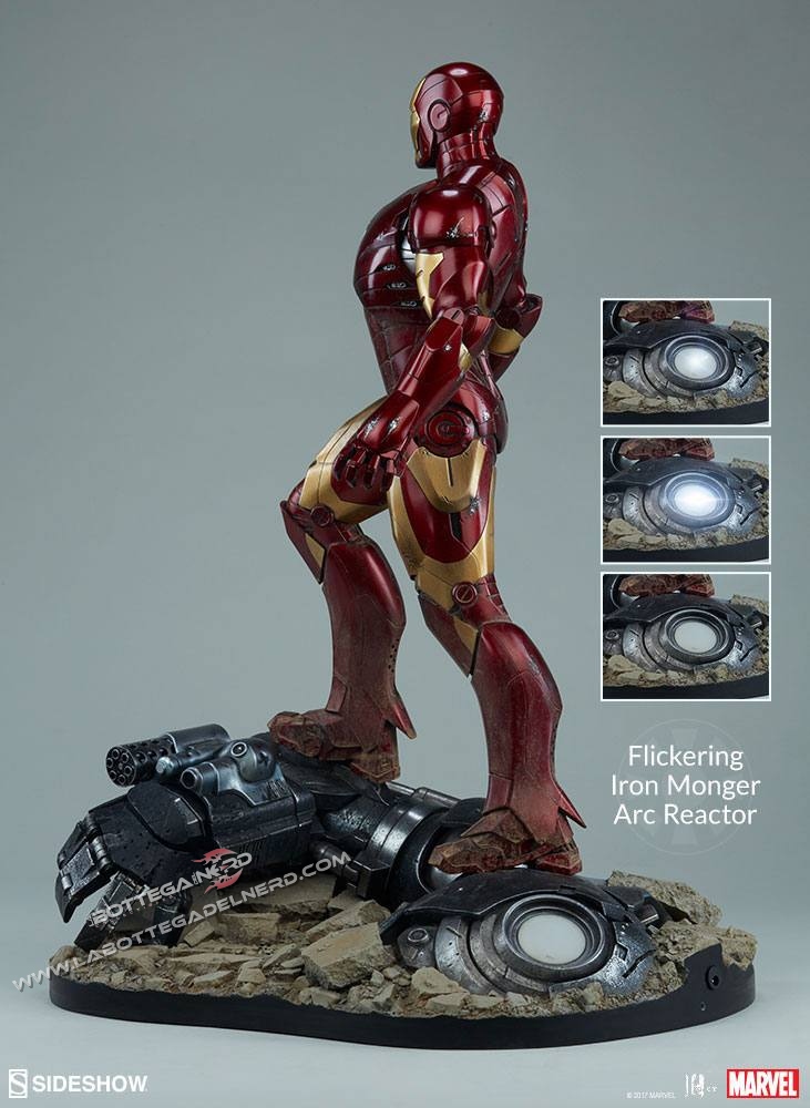 Questa versione Maquette è tratta direttamente dalla scena del omonimo film, riproduce infatti la Mark III così come vista durante il film, questa statua è realizzata in collaborazione con Legacy Effect, estremamente curata in ogni dettaglio viene dotata di luci a LED, incastonate sia sul protagonista, occhi, mani e reattore Arc, che sul rottame dell’Iron Monger che forma parte della base.