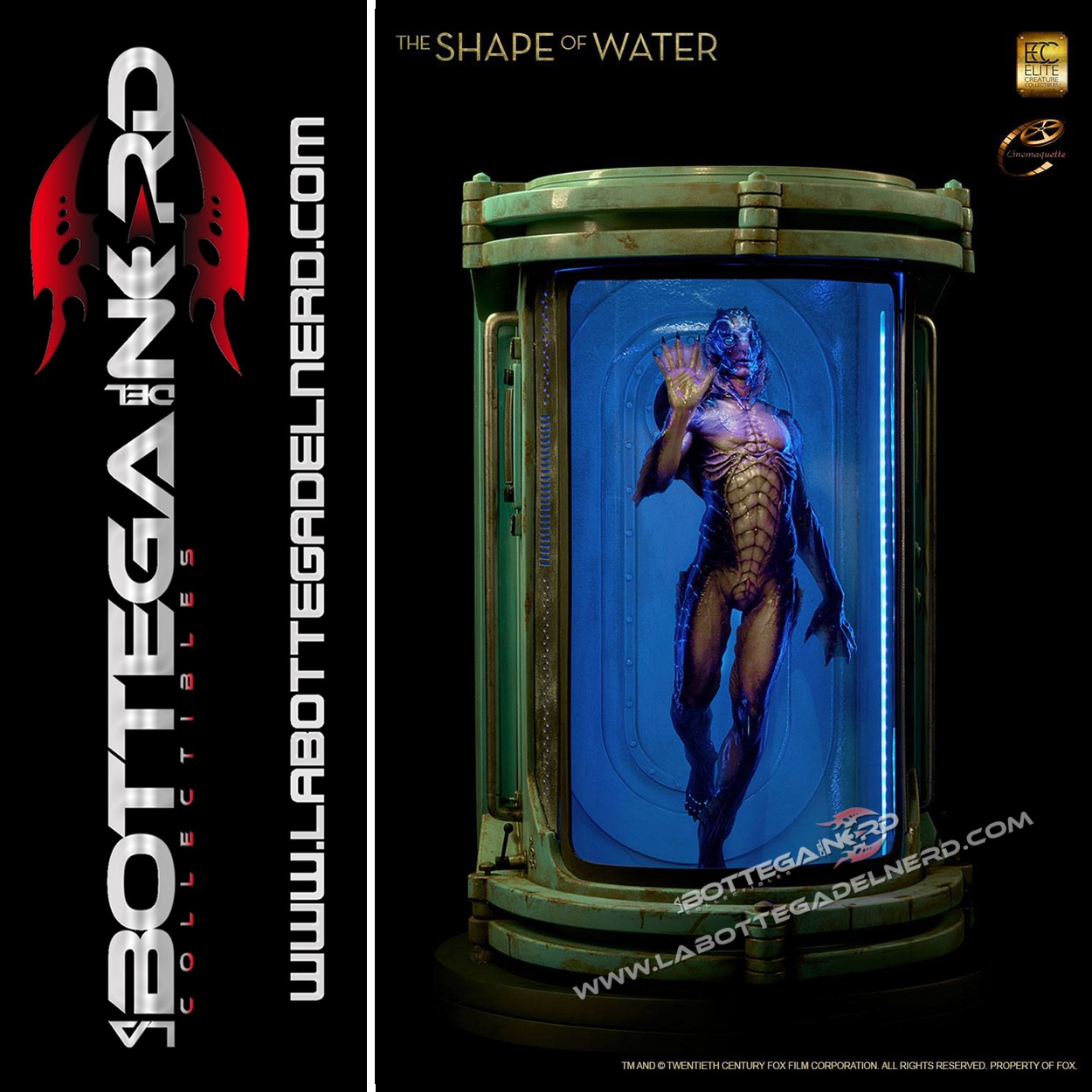 Un film tanto stupendo deve essere ricordato negli annali del cinema e gli artisti di ELITE CREATURE lo sanno bene, per questo motivo sono lieti di presentare questa fantastica statua in scala 1/3 della creatura anfibia vista nella pellicola vincitrice di 4 premi Oscar La forma dell’acqua.