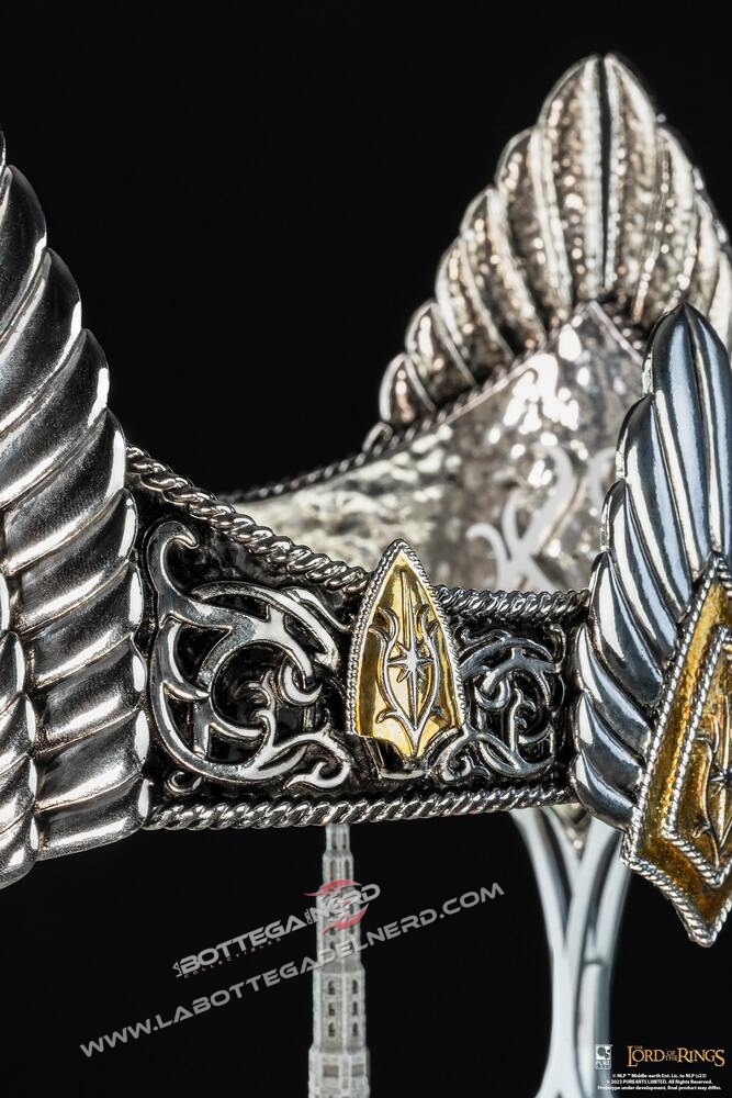 Bellissima replica in scala 1/1 dedicata alla corona di Gondor, così come appare nel film Il Signore Degli Anelli – Il Ritorno del Re, dove viene indossata da Aragorn.
