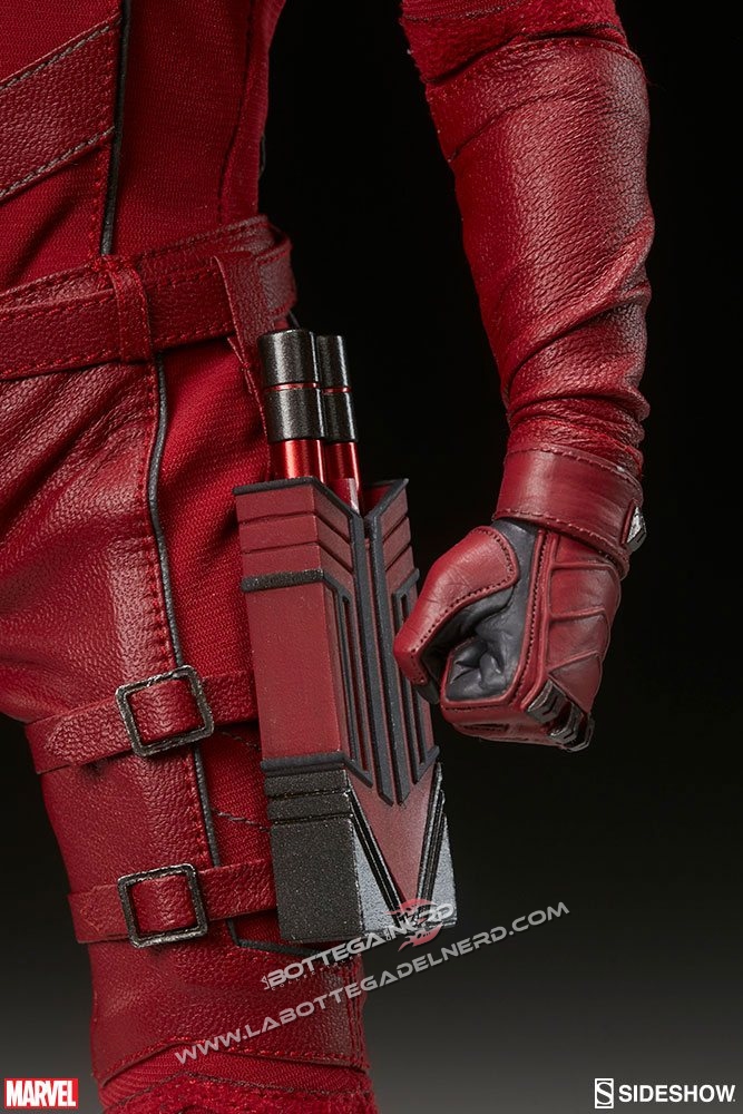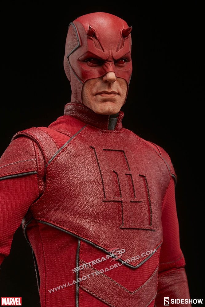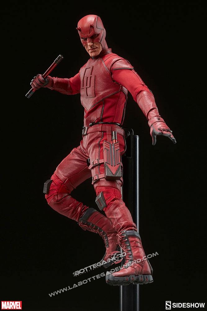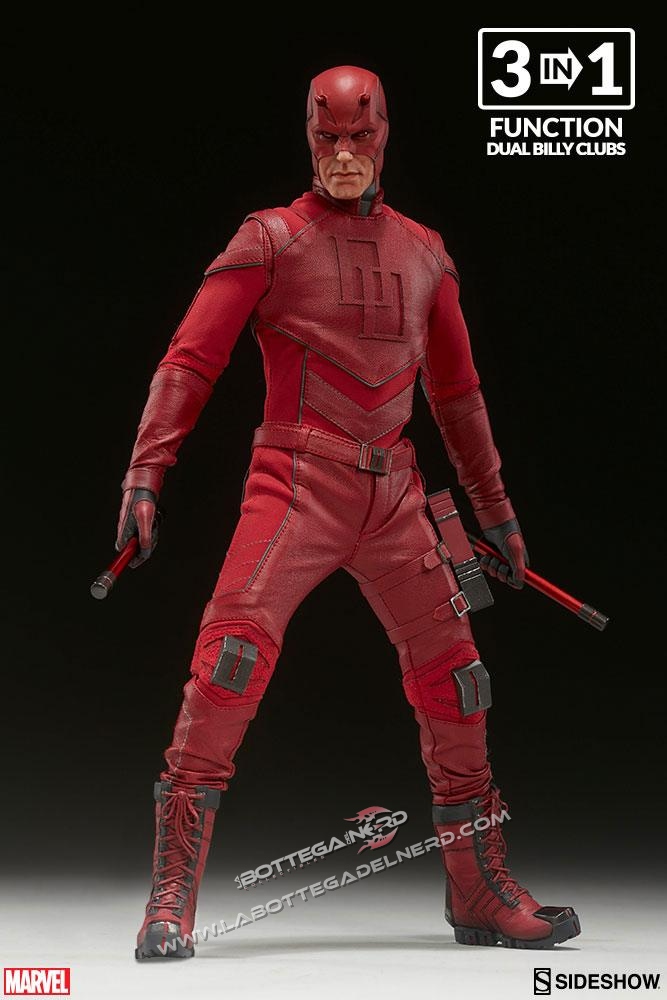 Tratto dalla versione fumetto del super eroe di Hell’s Kitchen, è in scala 1/6 con un altezza di 30 cm. Completamente snodato, viene consegnato in un elegante confezione con le effige del diavolo rosso, e dotato di un set di mani alternative e il suo bastone multi-funzione che può essere trasformato di diversi armi offensive.