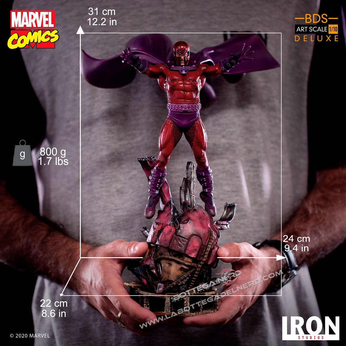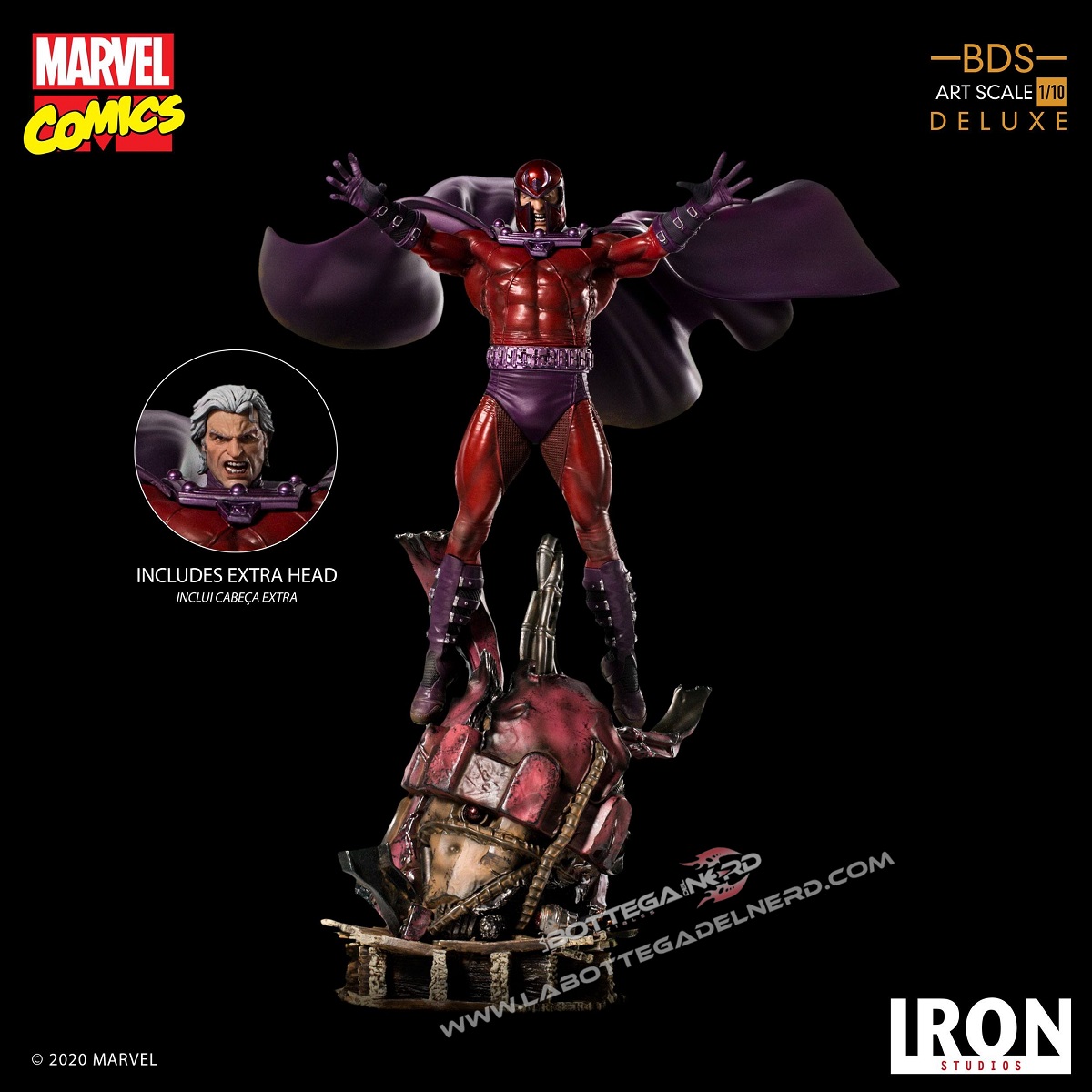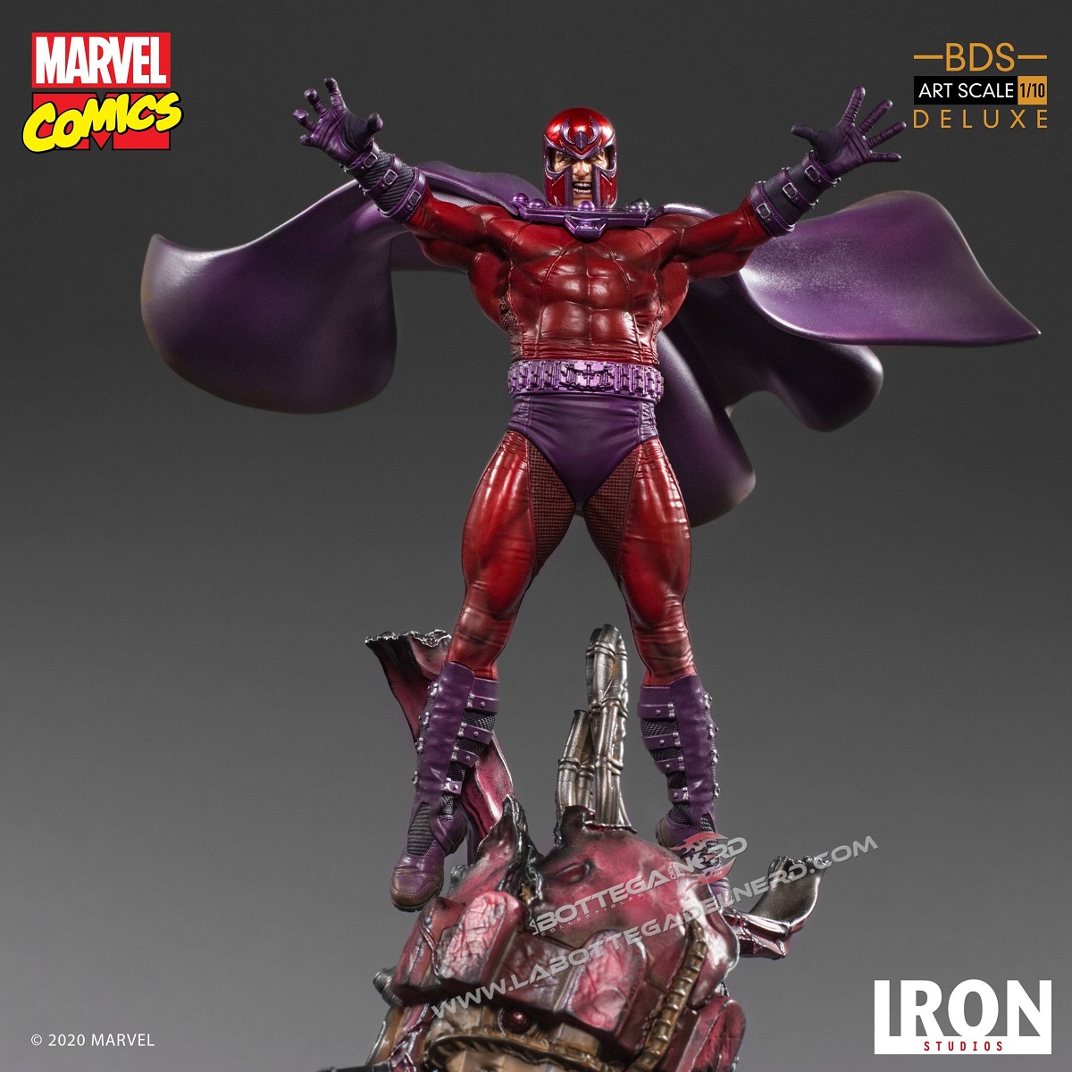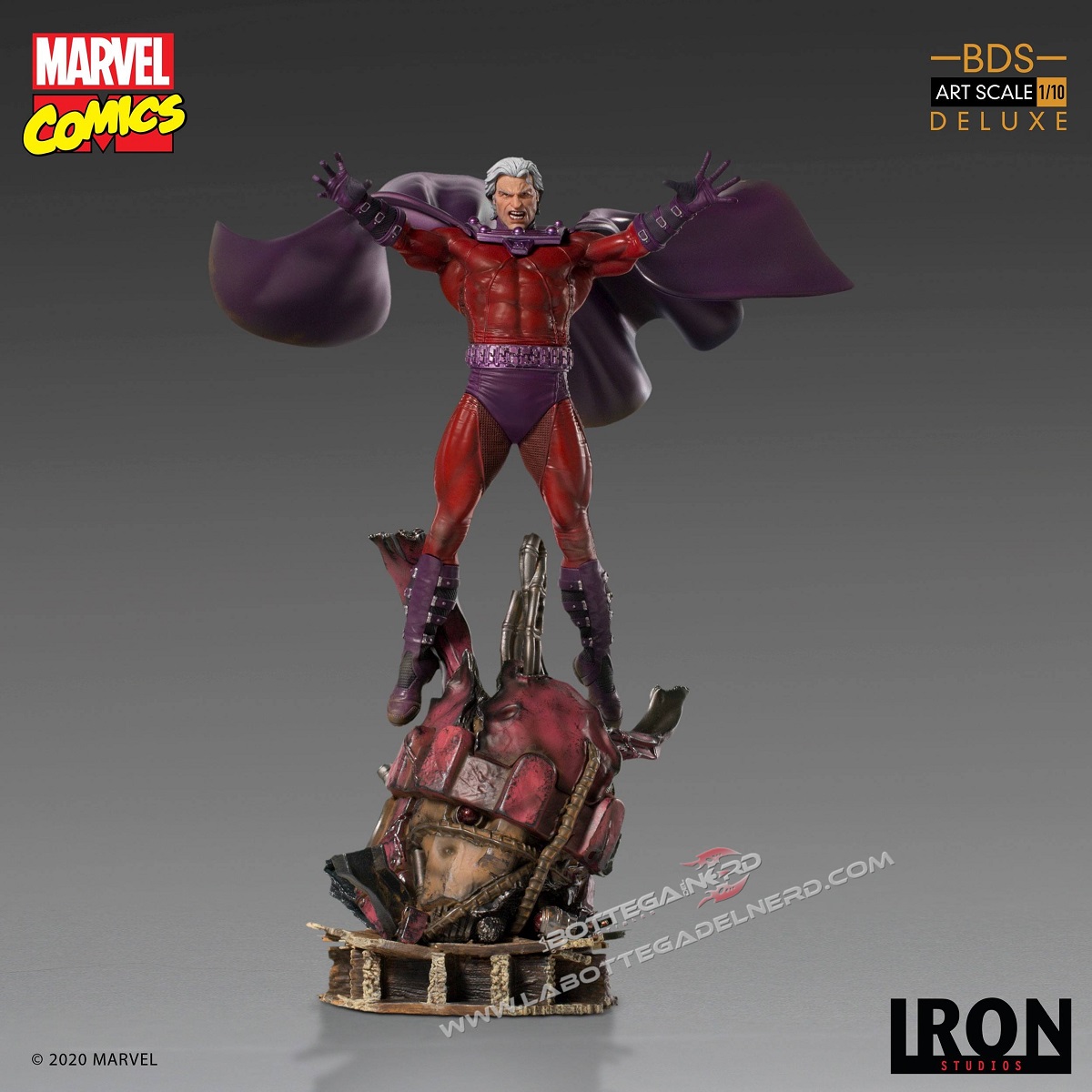 Probabilmente perché il potere di controllare i metalli non è una cosa da poco e in questa nuova realizzazione di Iron Studios, il mutante da sfoggio di tutta la sua potenza, mentre sfruttando al massimo i suoi poteri prende il controllo di una Sentinella, levitando sopra la sua testa. La statua, in scala 1/10 e alta 31 cm, permetterà di esporre il mutante con o senza elmetto ed è tratta dal secondo diorama “X-Men Vs Sentinel” che vedrà presto la luce; ricordiamo che questa edizione non sarà combinabile con il diorama ma andrà acquistata nel bundle specifico.