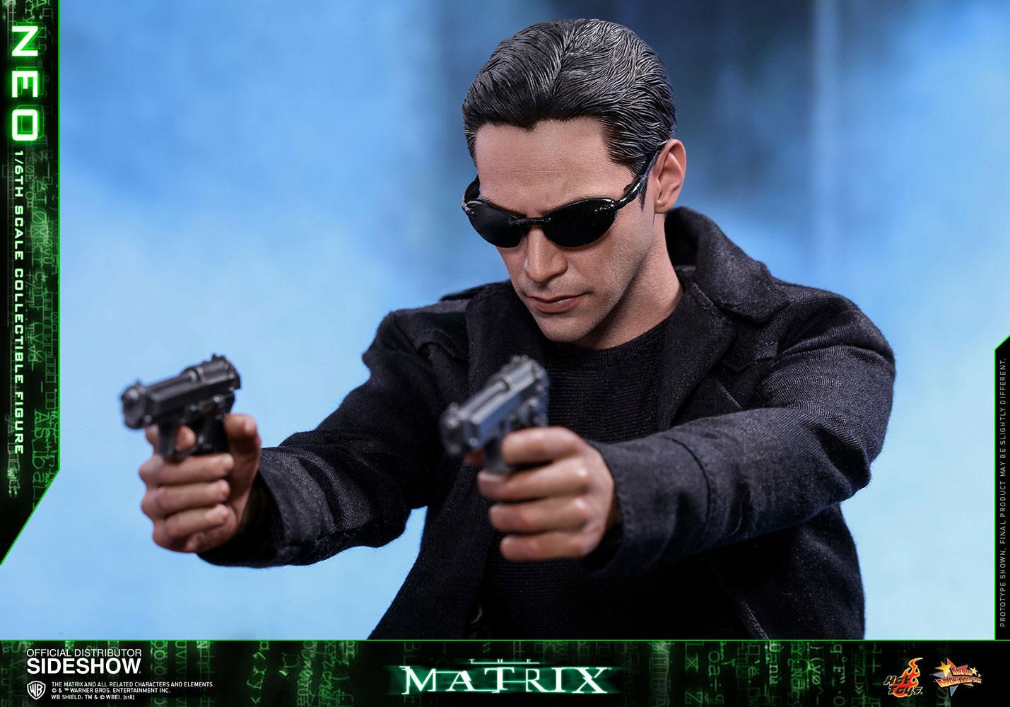 Interpretato dal famoso attore Keanu Reeves e classificato come uno dei più grandi personaggi cinematografici di tutti i tempi, Neo è realizzato con una cura meticolosa e attenta, il vestito e il lungo cappotto sono realizzati con un tipo di  sartoria sofisticata.