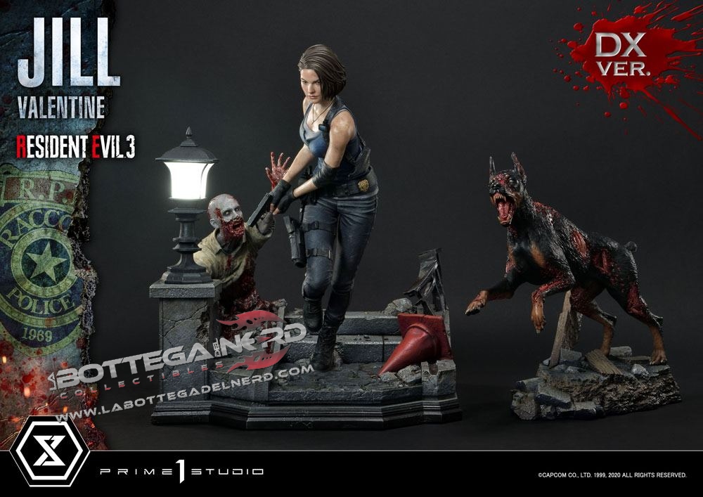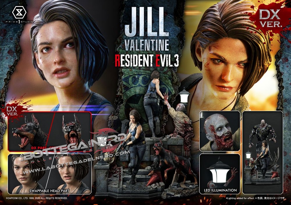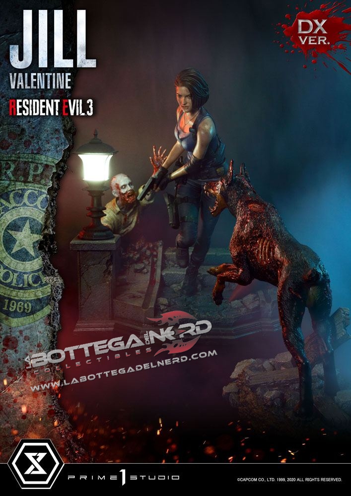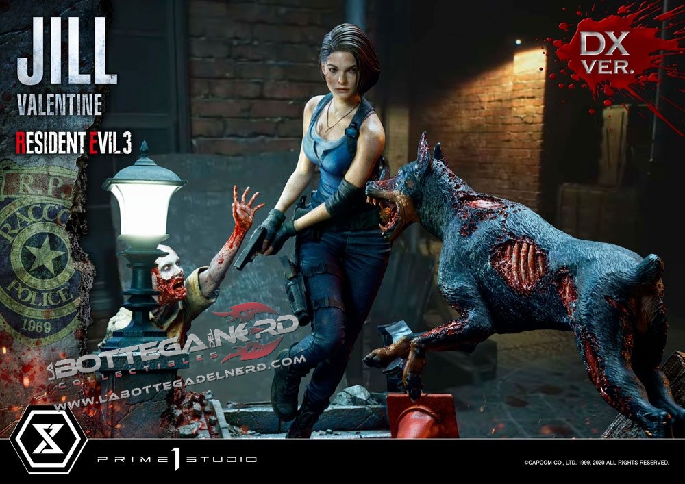 Gli scultori di casa Prime 1 Studio hanno catturato l’atmosfera tesa e il pericolo minaccioso di Resident Evil. La statua è rappresentata in maniera straordinaria grazie ai fini dettagli e ad una cura per la pittura unica che dona a questo pezzo un estremo realismo, la statua viene proposta con due diverse teste di Jill Valentine.