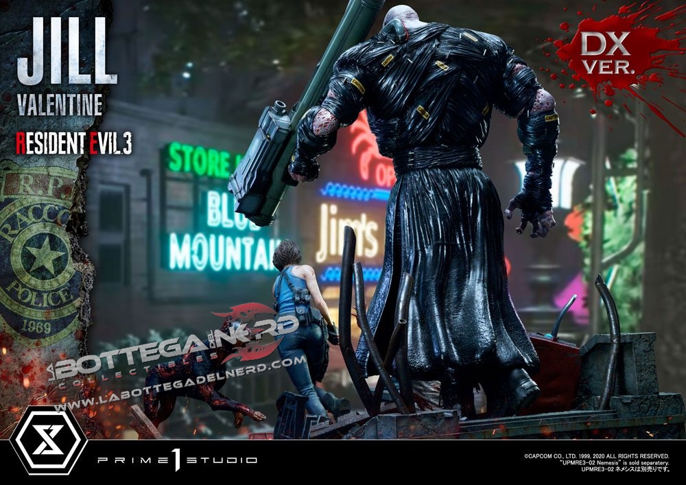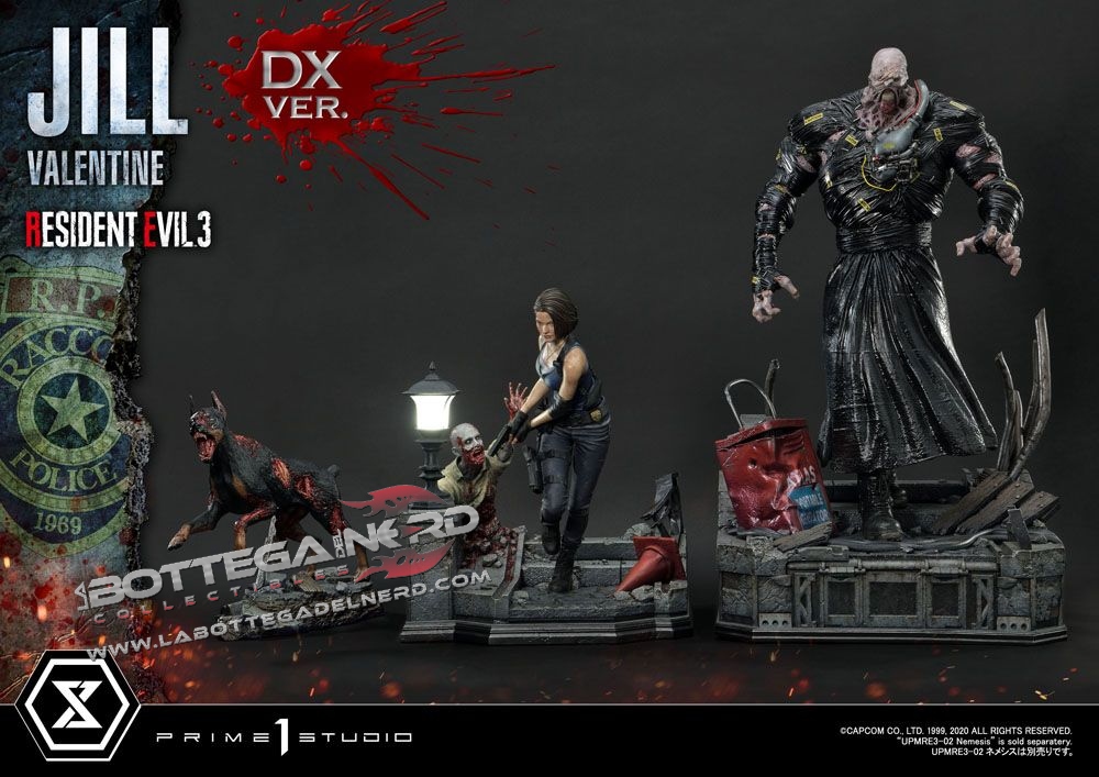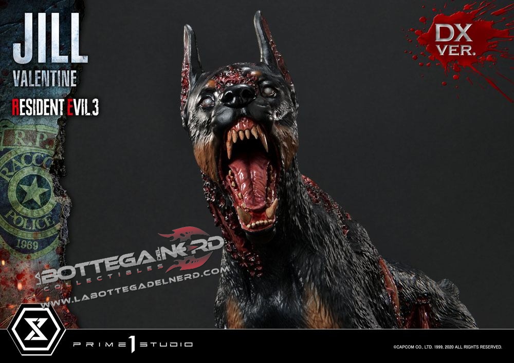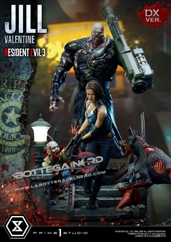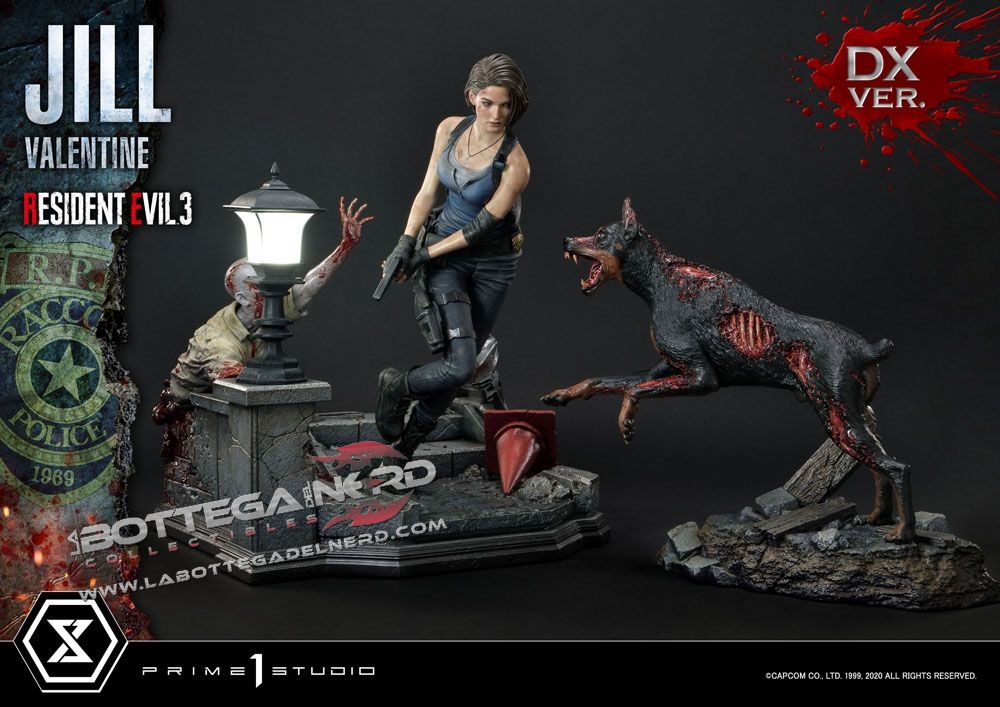 Gli scultori di casa Prime 1 Studio hanno catturato l’atmosfera tesa e il pericolo minaccioso di Resident Evil. La statua è rappresentata in maniera straordinaria grazie ai fini dettagli e ad una cura per la pittura unica che dona a questo pezzo un estremo realismo, la statua viene proposta con due diverse teste di Jill Valentine.