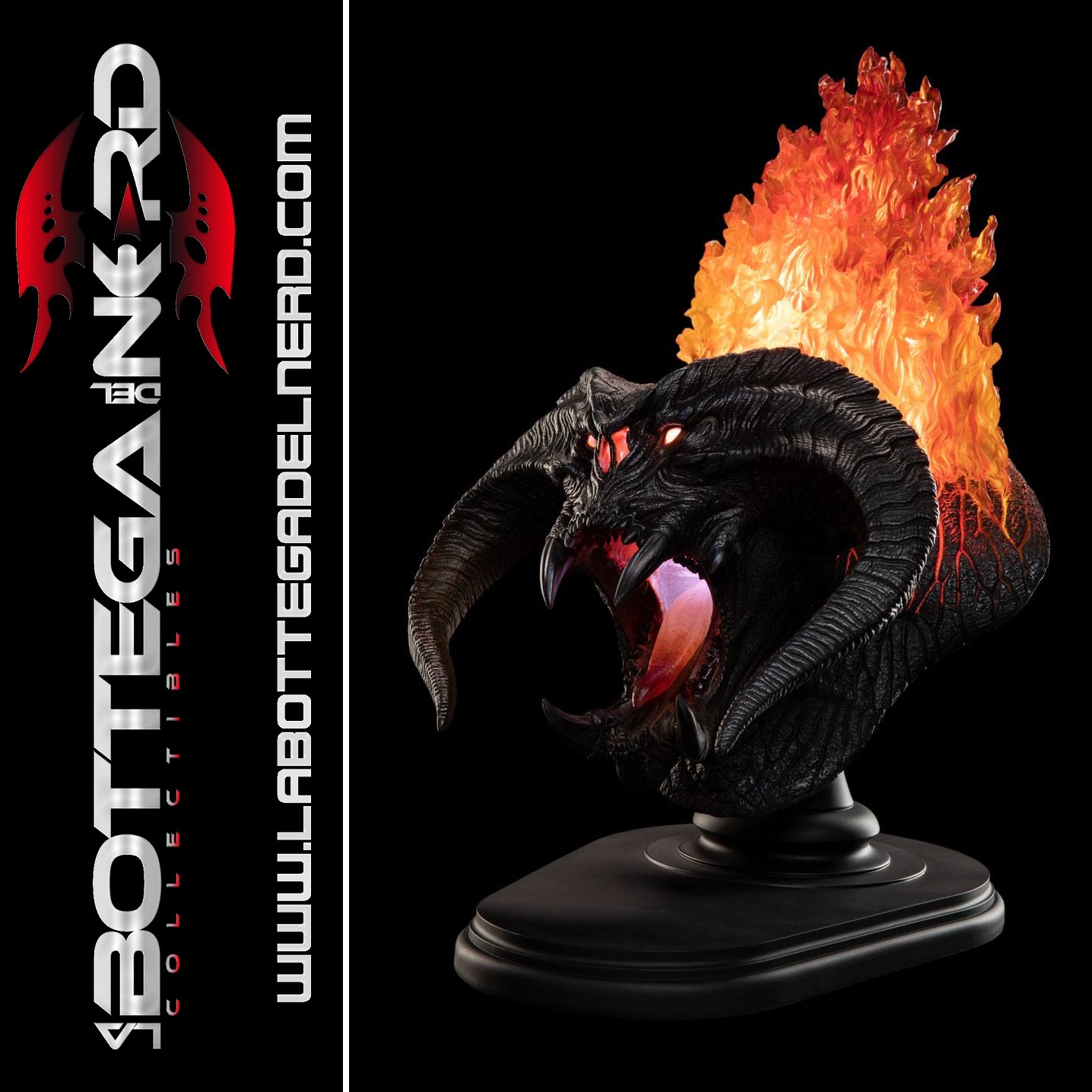 Questo busto è un edizione limitata a soli 666 esemplari al mondo, è composto da resine di altissima qualità e presenta un’illuminazione a LED unica per creare un effetto fiamma avvolgente e realistico.