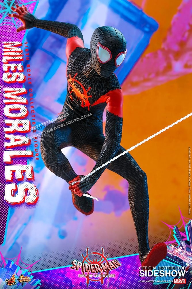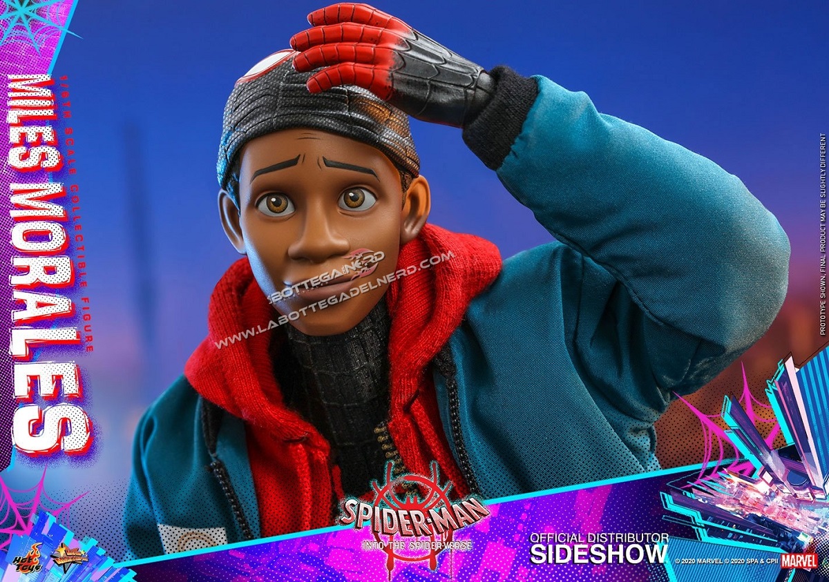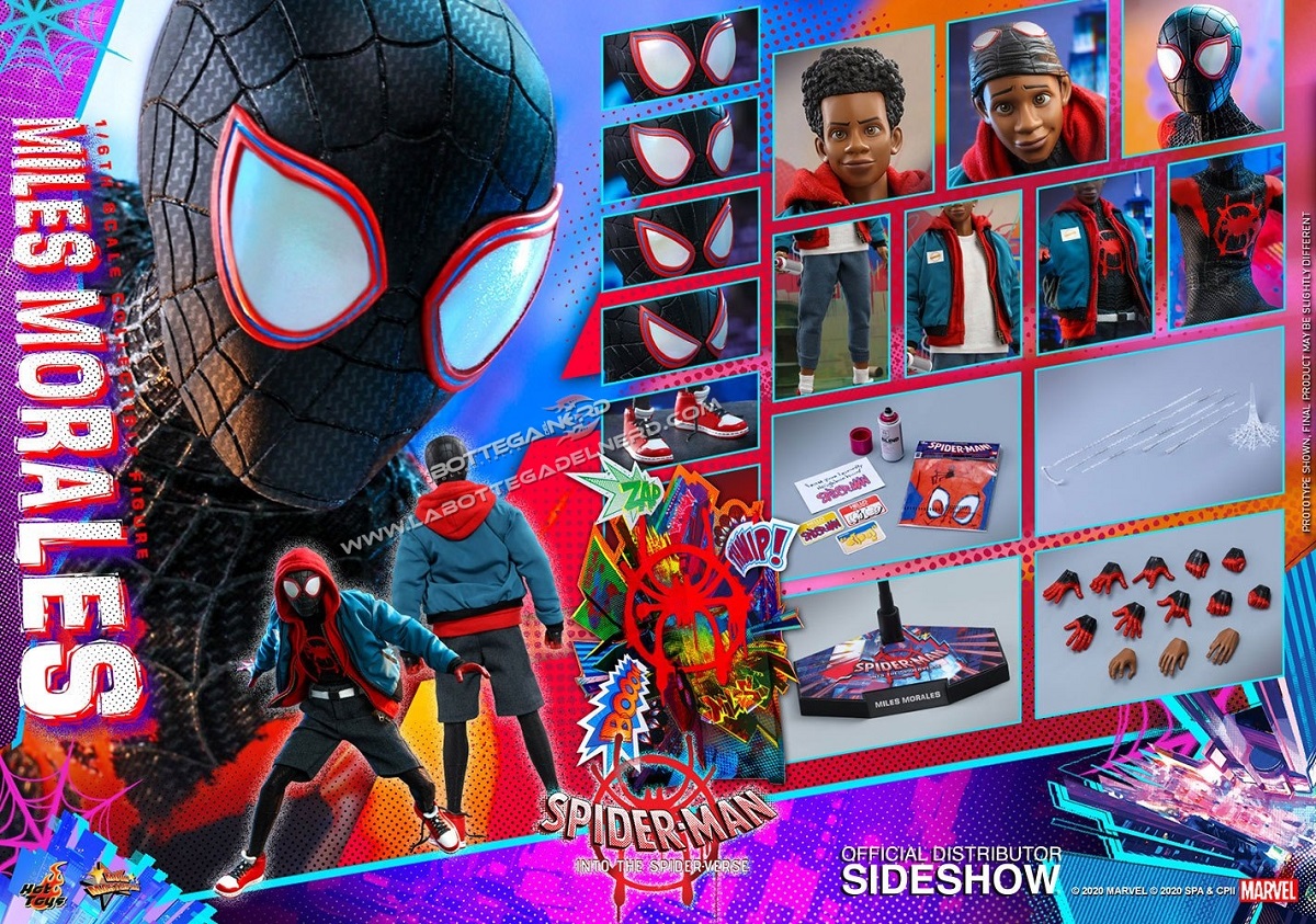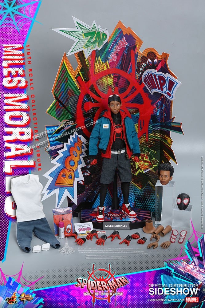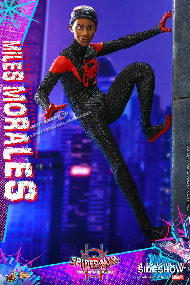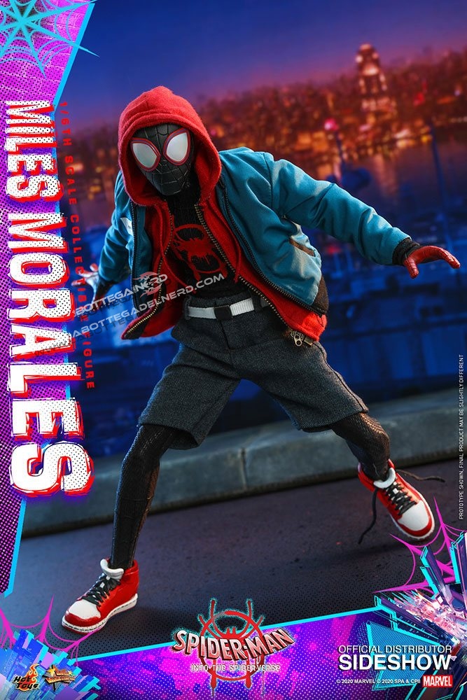 La ditta, tra le migliori produttrici di action-doll in scala 1/6, sforna un prodotto di prima categoria e dedicato al protagonista del film: Miles Morales. Il giovane Uomo Ragno sarà contornato da un numero elevato di accessori, dalle ragnatele alle bombolette spray per i graffiti ma quello che colpisce di più è la variegatissima possibilità di posa grazie ai vari vestiti inclusi. Miles potrà essere esposto con il suo costume nero (con felpa e short o senza)  e persino con abiti civili, creando un’ampia gamma di possibilità che manderà fuori di testa ogni collezionista del genere. A chiudere il prodotto troviamo una coloratissima base che riprende lo stile psichedelico e “graffittaro” dell’opera, coronando un prodotto che già appare di ottima fattura.