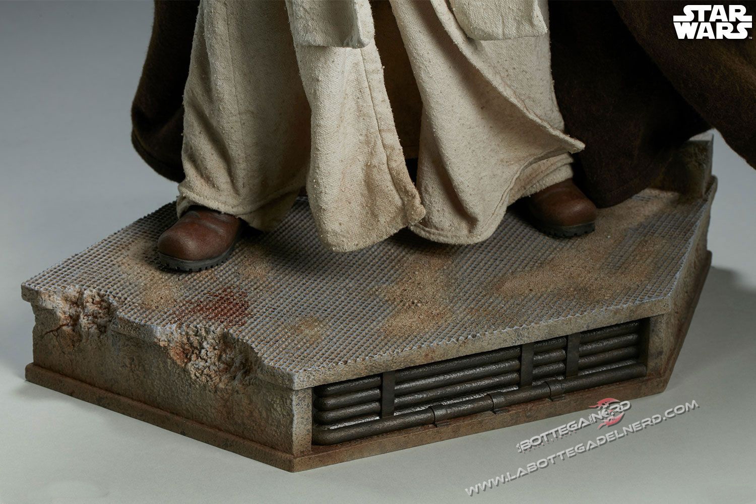 La base raffigura il pavimento della famosa Cantina dell’astro porto di Mos Eisley. Il volto egregiamente scolpito riproduce perfettamente i lineamenti del famoso attore inglese.