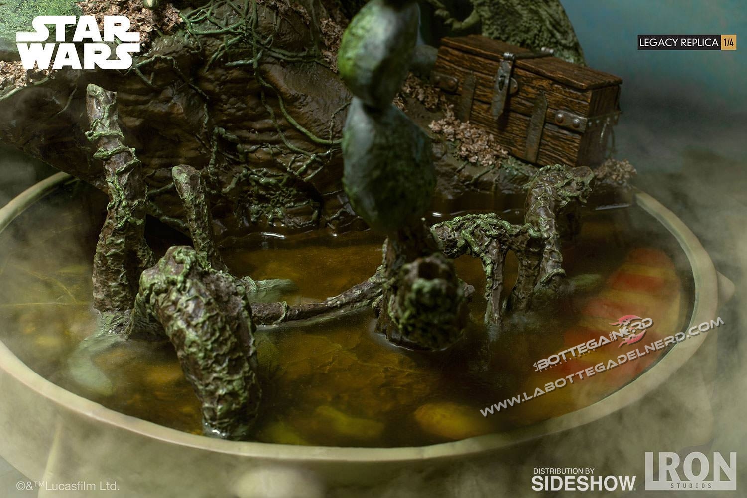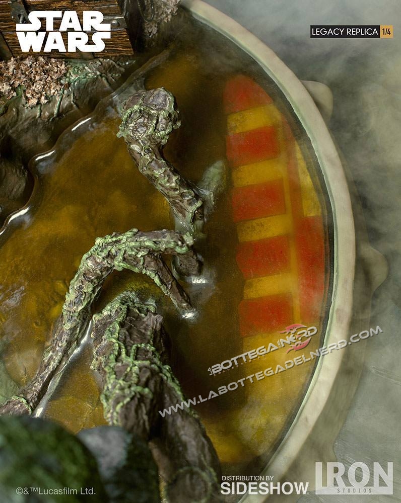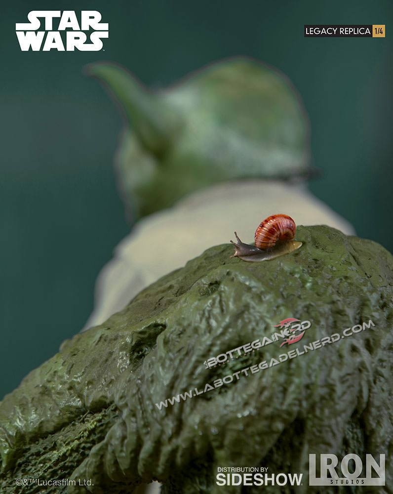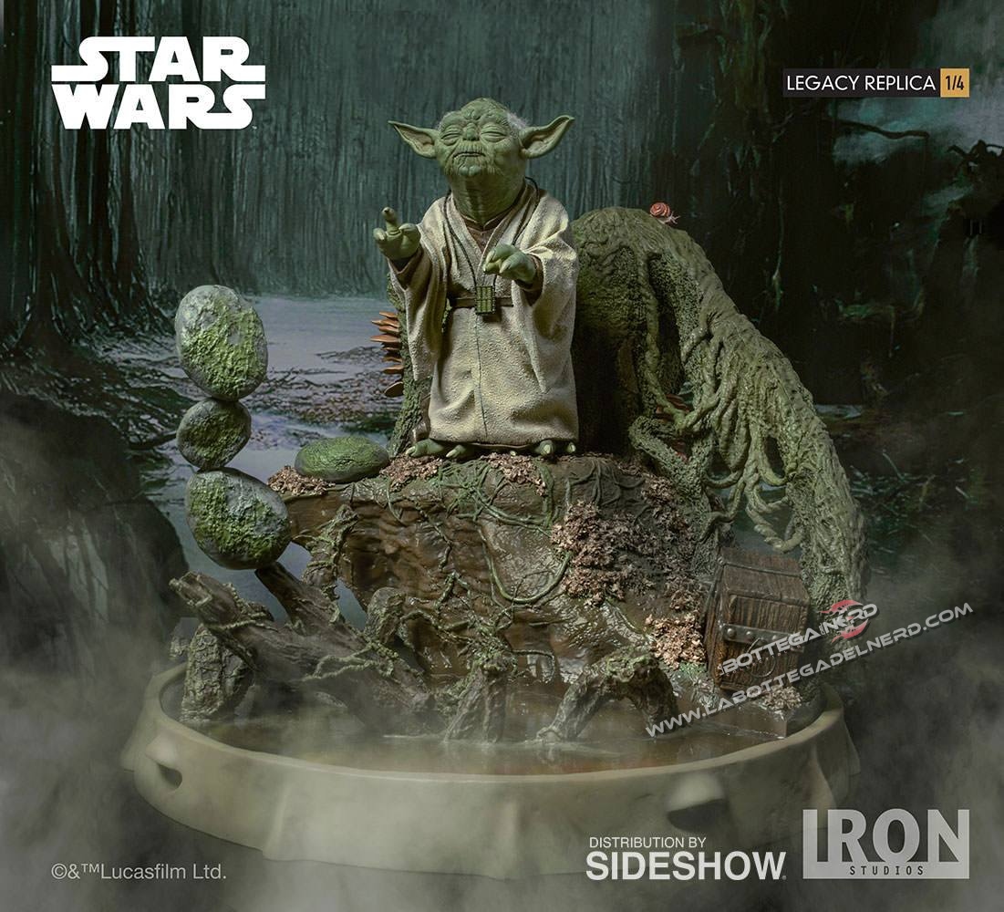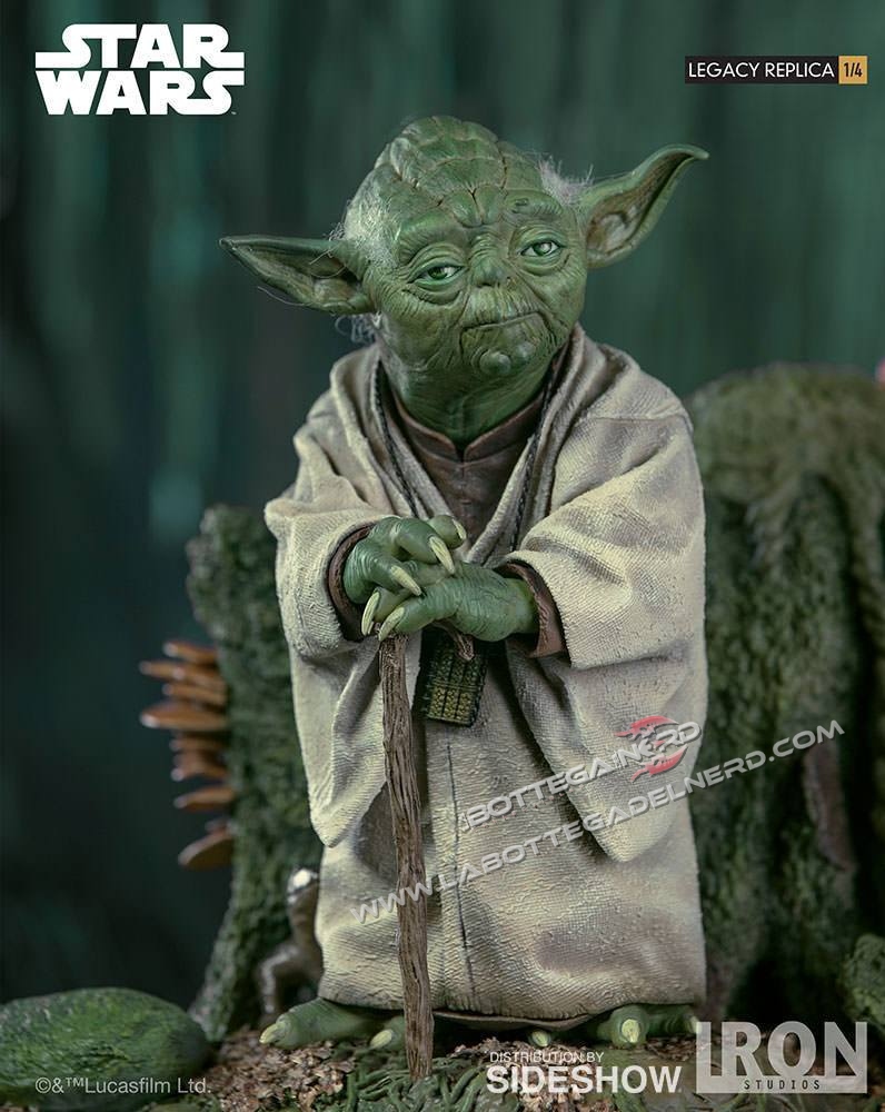 La statua è realizzata per la linea Scale Legacy Replica Statue in scala 1/4 e svilupperà un altezza totale di 30 cm compresa la base. Il materiale utilizzato per la statua è Polystone, completamente dipinta a mano  sarà un edizione limitata in tutto il mondo. Corredata alla statua troveremo una spada laser, un Holocron, una torcia elettrica e un comunicatoreYoda sarà possibile posarlo in due diversi modi, con gli occhi chiusi e con gli occhi aperti con il bastone in mano.