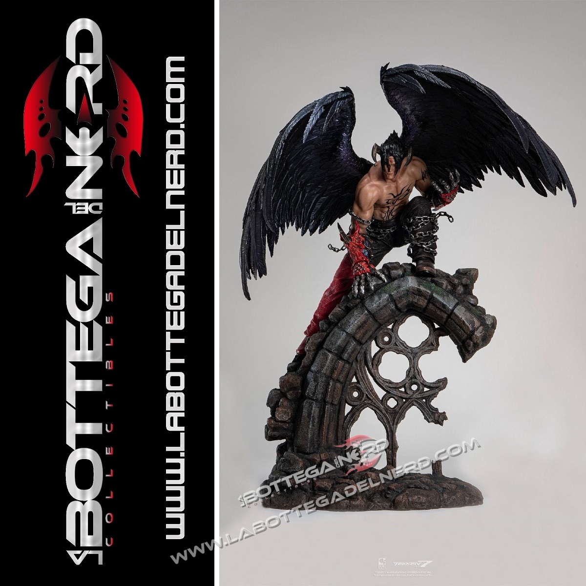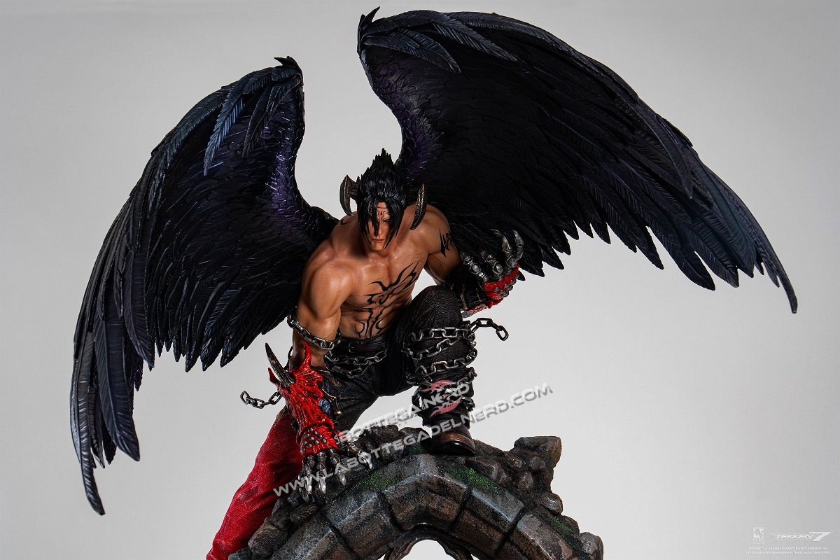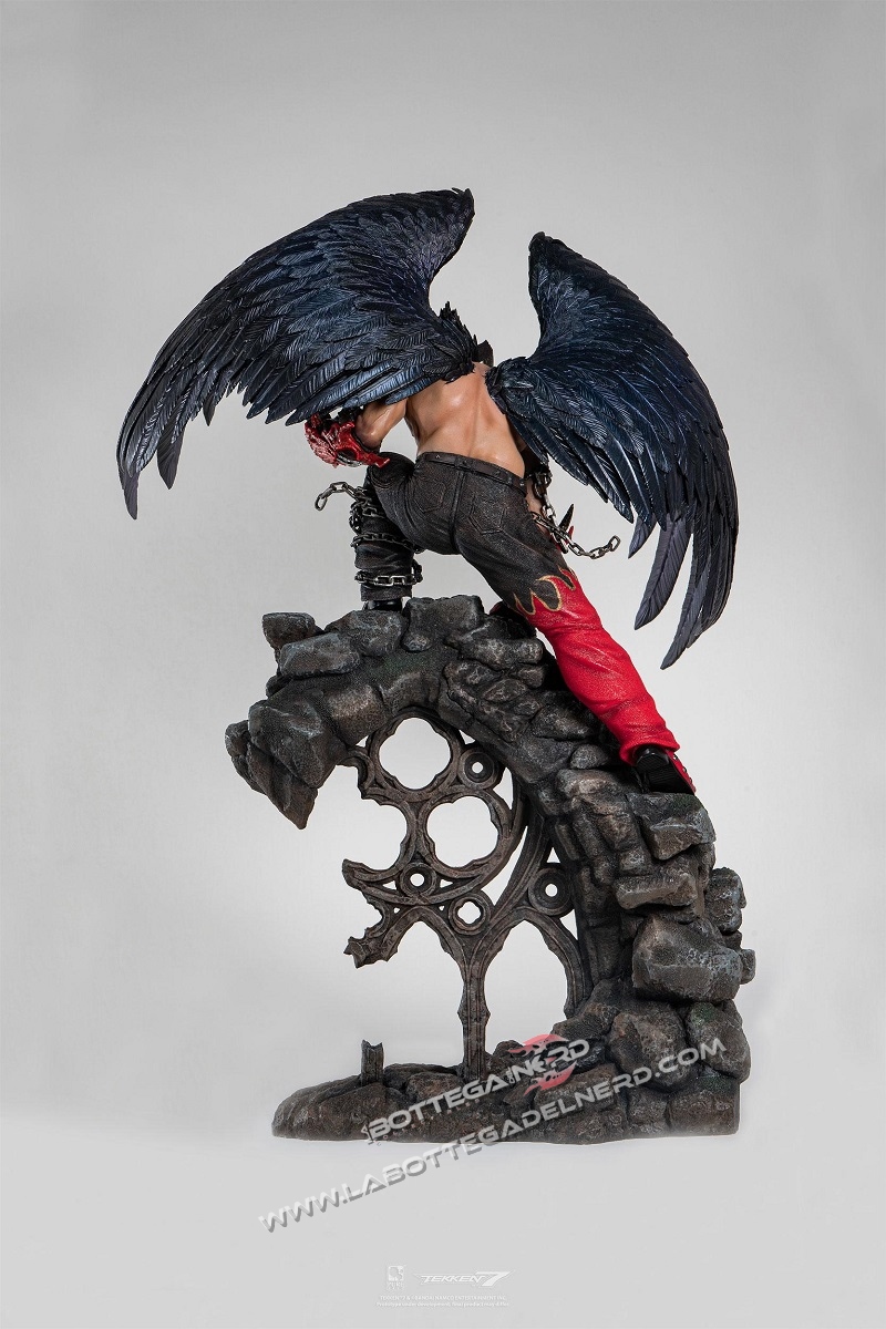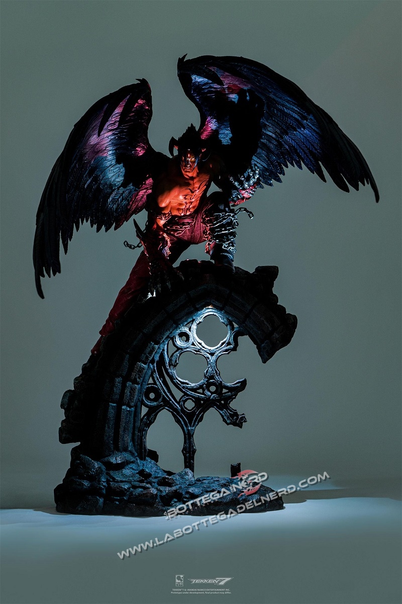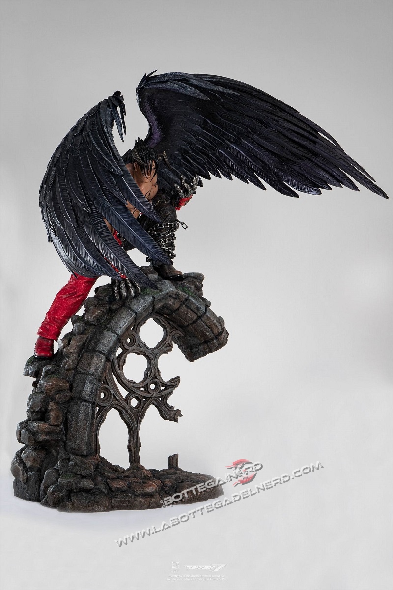 La forma demoniaca di Jin Kazama, apparsa per la prima volta in uno dei finali di “Tekken 3″, è tratta dal settimo capitolo della immortale serie di picchiaduro e vediamo il demone posare sui resti di edificio distrutto, con le ali corvine ripiegate in avanti. La statua sarà impreziosita da LED, nello specifico all’interno degli occhi, sulla fronte e sulla base, creando un effetto scenico di tutto rispetto ben visibile nelle foto in galleria; la produzione vanterà anche dimensioni considerevoli, con ben 68 cm di altezza e 52 di larghezza.