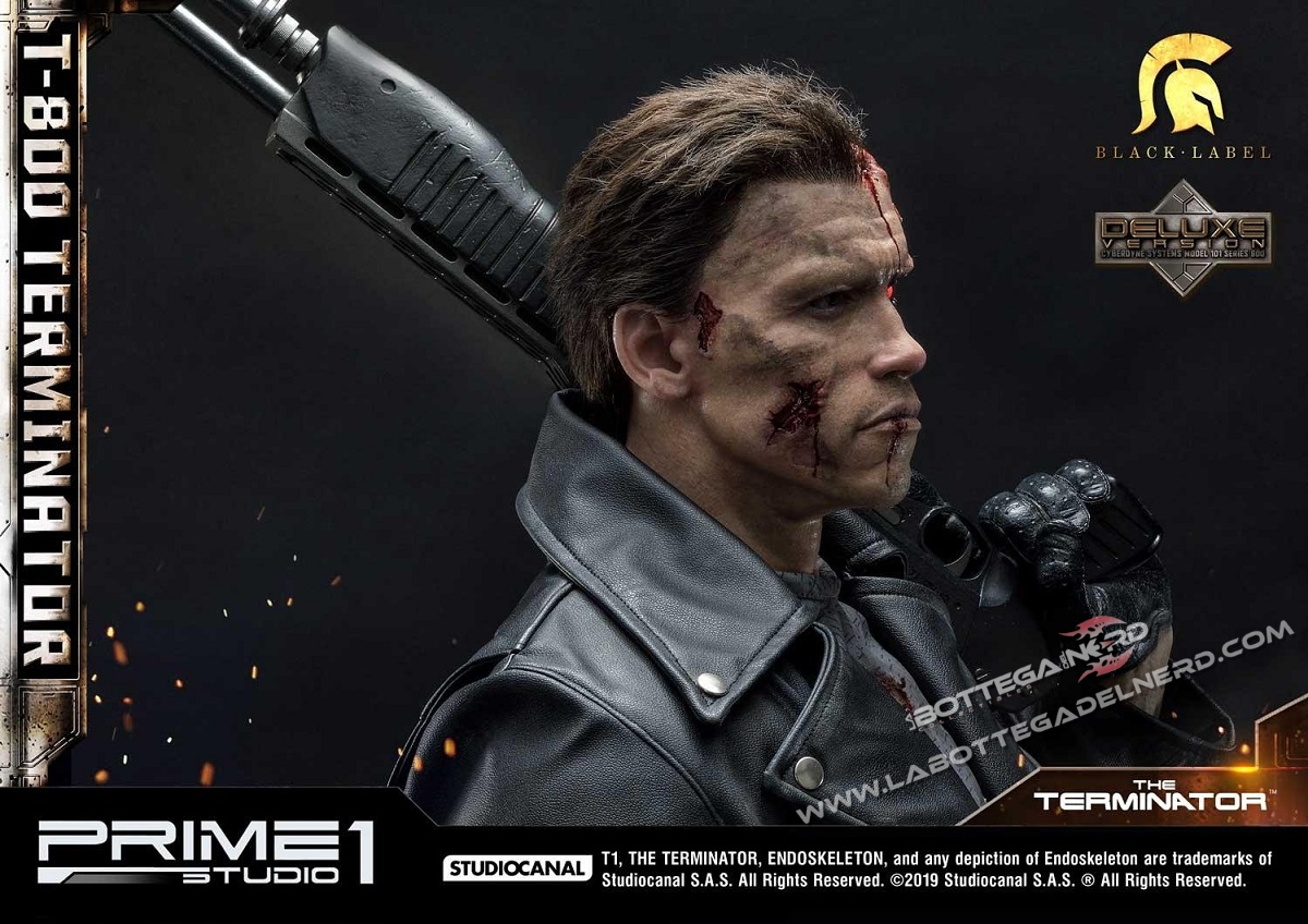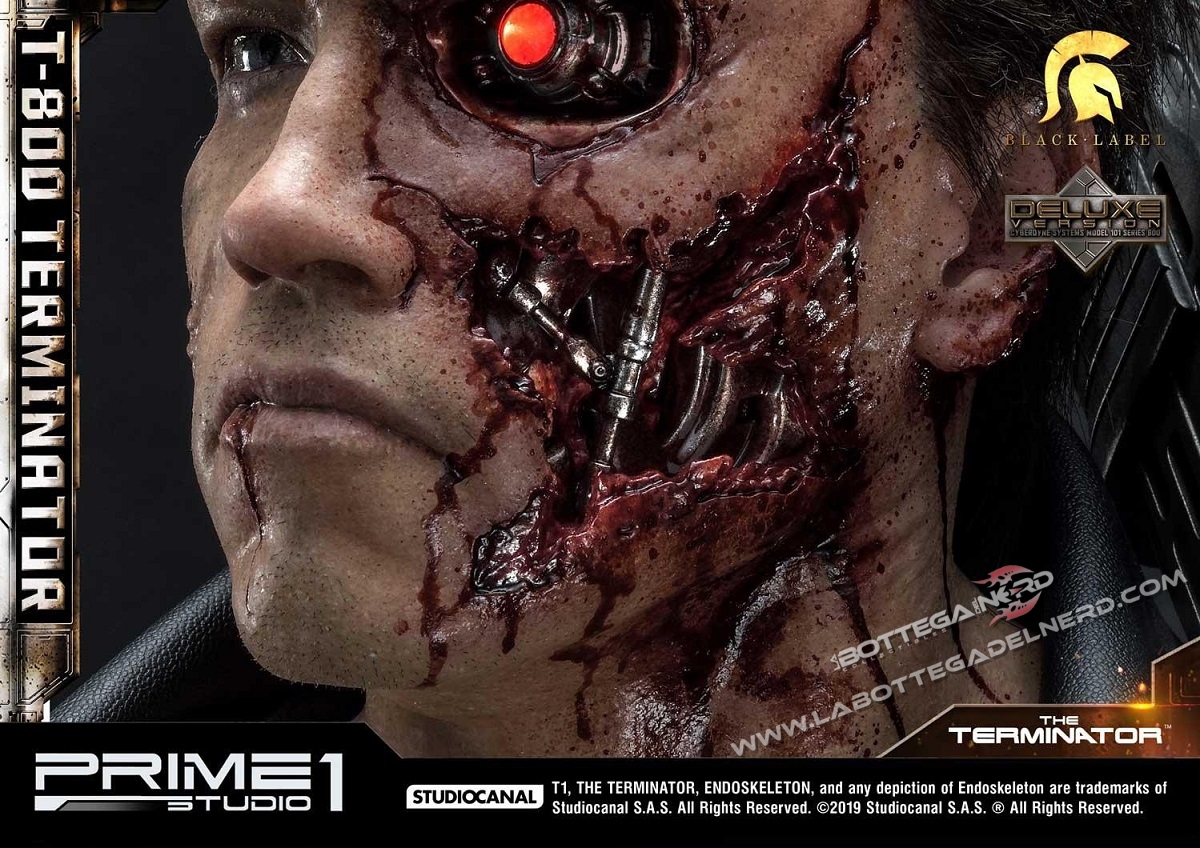 QUESTA VERSIONE DELUXE COMPRENDE UN ULTERIORE TESTA AGGIUNTIVA, LA QUALE PERMETTE DI INTRAVEDERE L’INTRICATA MECCANICA DEL T-800 POSTA ALL’INTERNO DI ESSA.