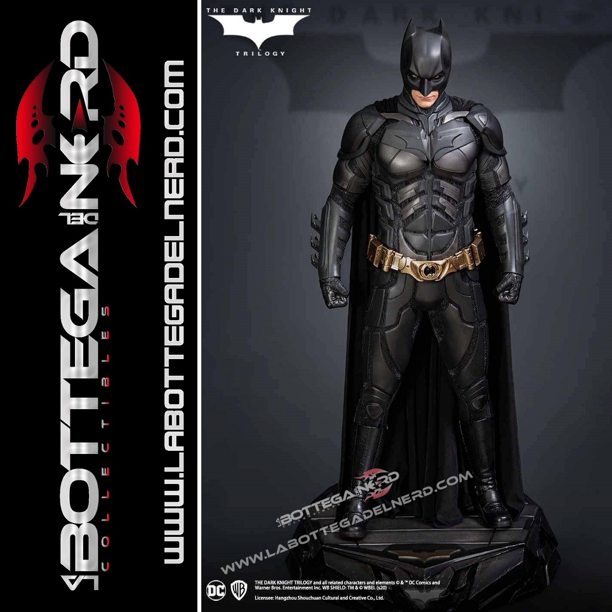 Con quasi 70 cm di altezza, la statua raffigura il Cavaliere Oscuro in una posa statica ma possente, grazie ad una basetta piedistallo rialzata perfettamente in linea con il design del personaggio. Saranno proposte 3 edizioni per questo prodotto: