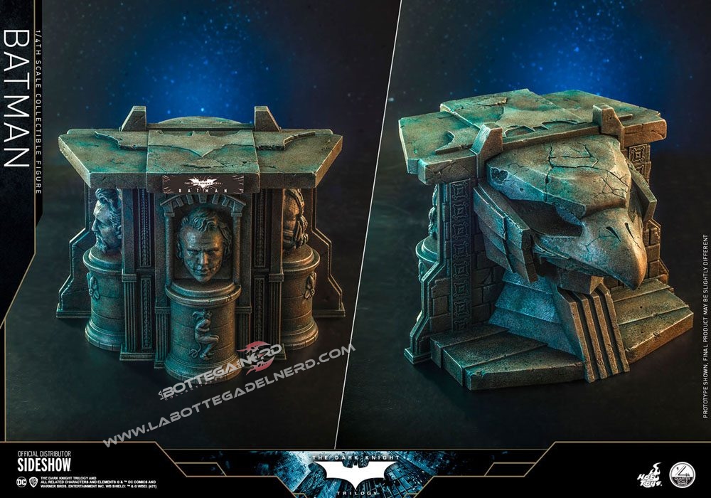 Dalla Trilogia del Cavaliere Oscuro di Nolan torna in tutta la sua gloria questa amatissima versione di Batman, carica di tantissimi accessori e soprattutto un’altezza invidiabile con ben 47 cm d’altezza. La figure sarà anche dotata di piedistallo diorama espositivo che presenterà i volti scolpiti dei 3 antagonisti dei film della saga, una vera e propria celebrazione dei film.