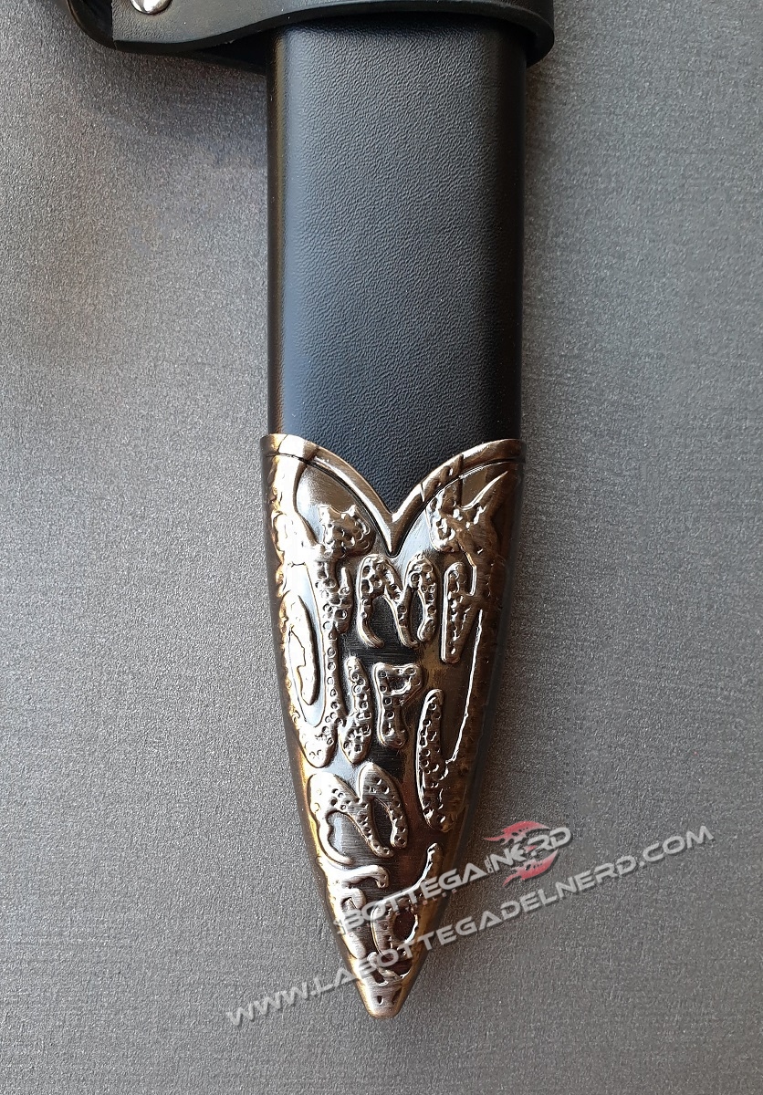 VERSIONE DELUXE ANCORA PIU’ DETTAGLIATA CON RUNE INCISE NELLA LAMA E FODERO ORNATO CON OTTIMI RILIEVI SUL COLLO E PUNTA.