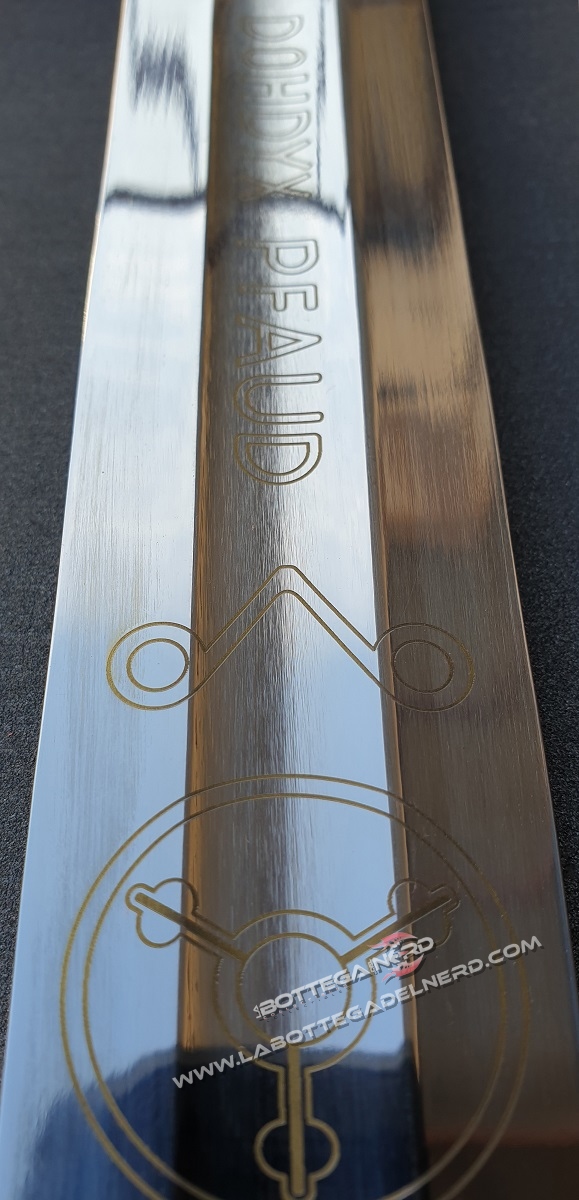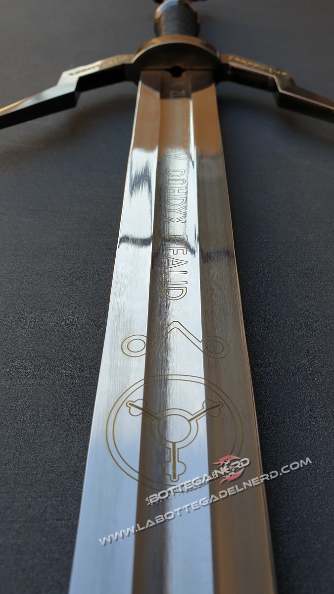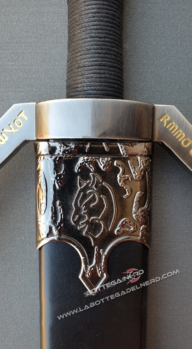 VERSIONE DELUXE ANCORA PIU’ DETTAGLIATA CON RUNE INCISE NELLA LAMA E FODERO ORNATO CON OTTIMI RILIEVI SUL COLLO E PUNTA.