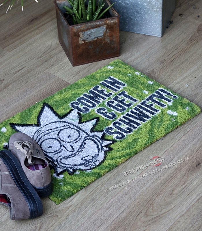 Bellissimo zerbino tratto dalla serie animata RICK AND MORTY, molto resistente e super curato, il materiale di questo zerbino è Fibra di Cocco quindi il lento deterioramento è garantito, un oggetto che nessun appassionato dovrebbe farsi sfuggire.